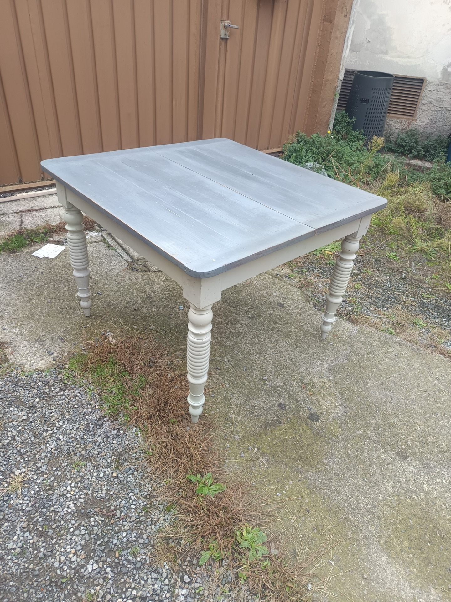 Repainted 19th-century French table. Dimensions: 100 x 100 x 75 cm