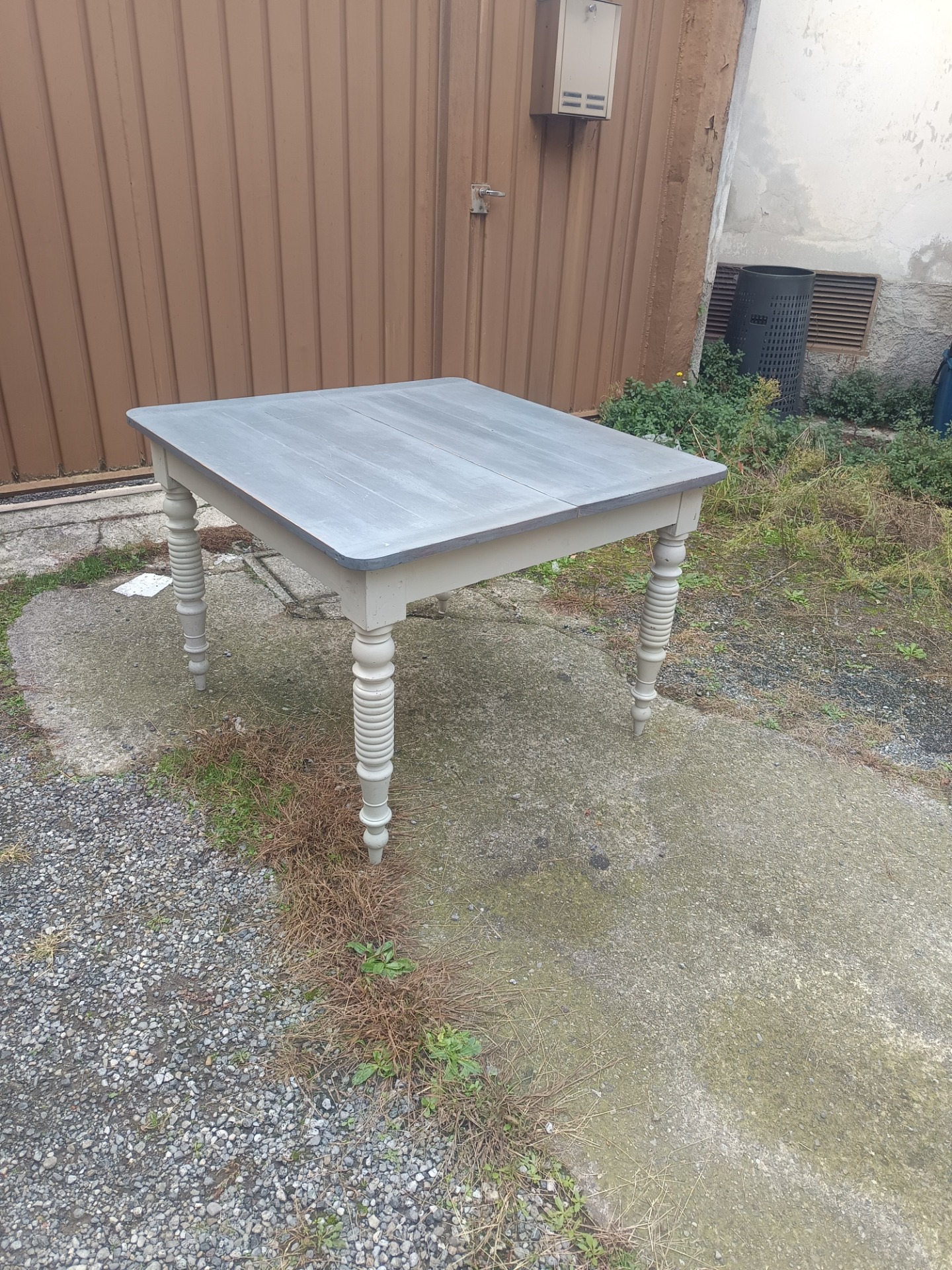 Repainted 19th-century French table. Dimensions: 100 x 100 x 75 cm