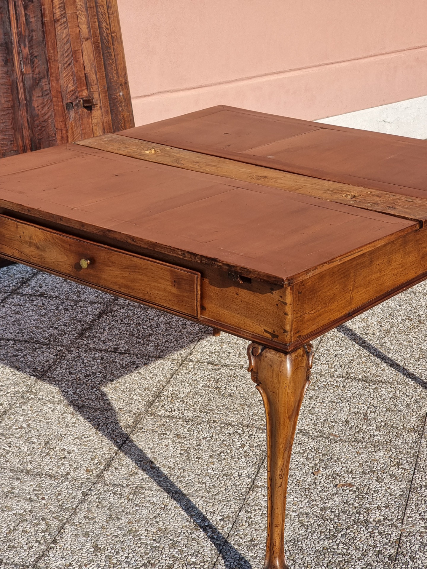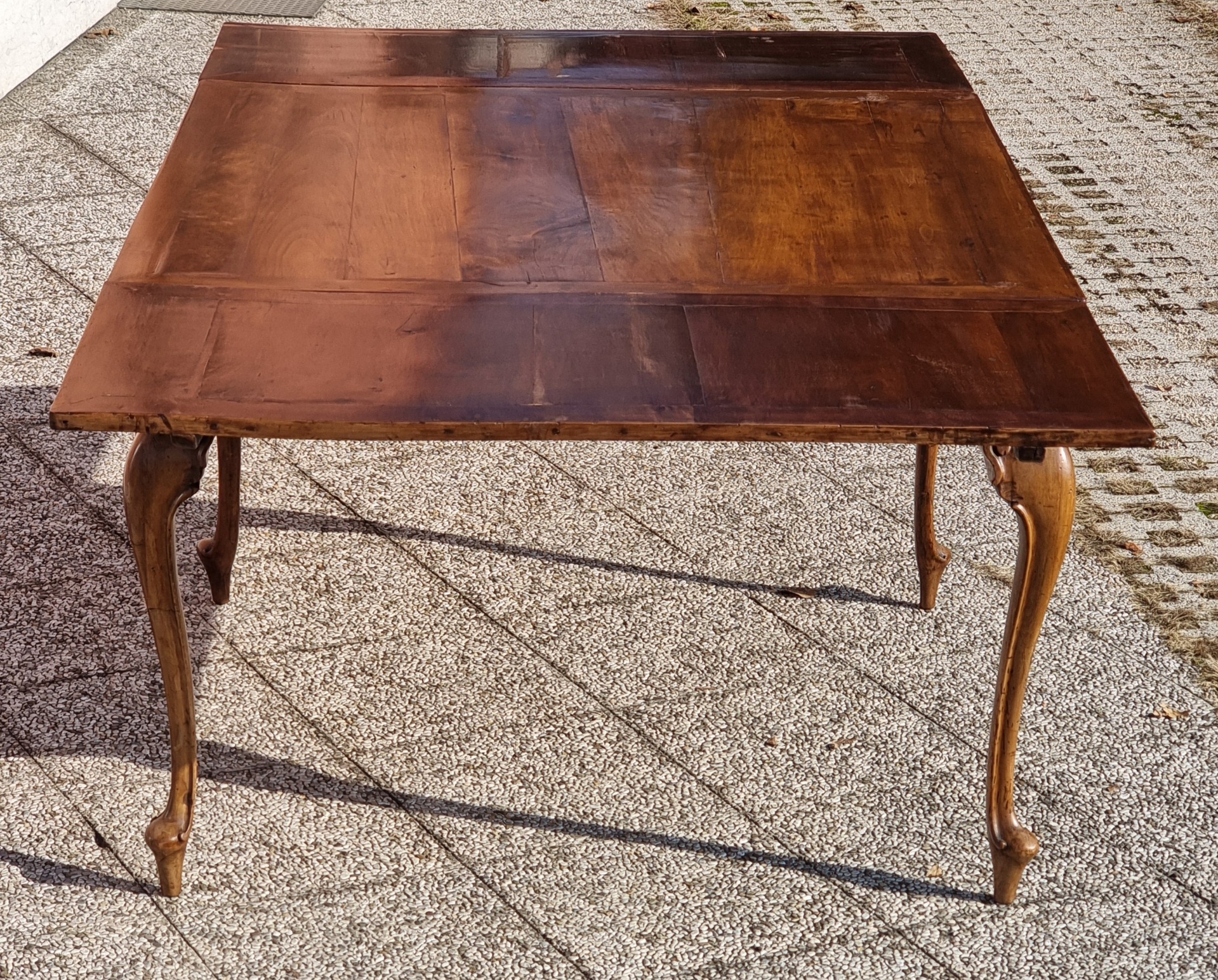Venetian extendable solid walnut table, 18th century