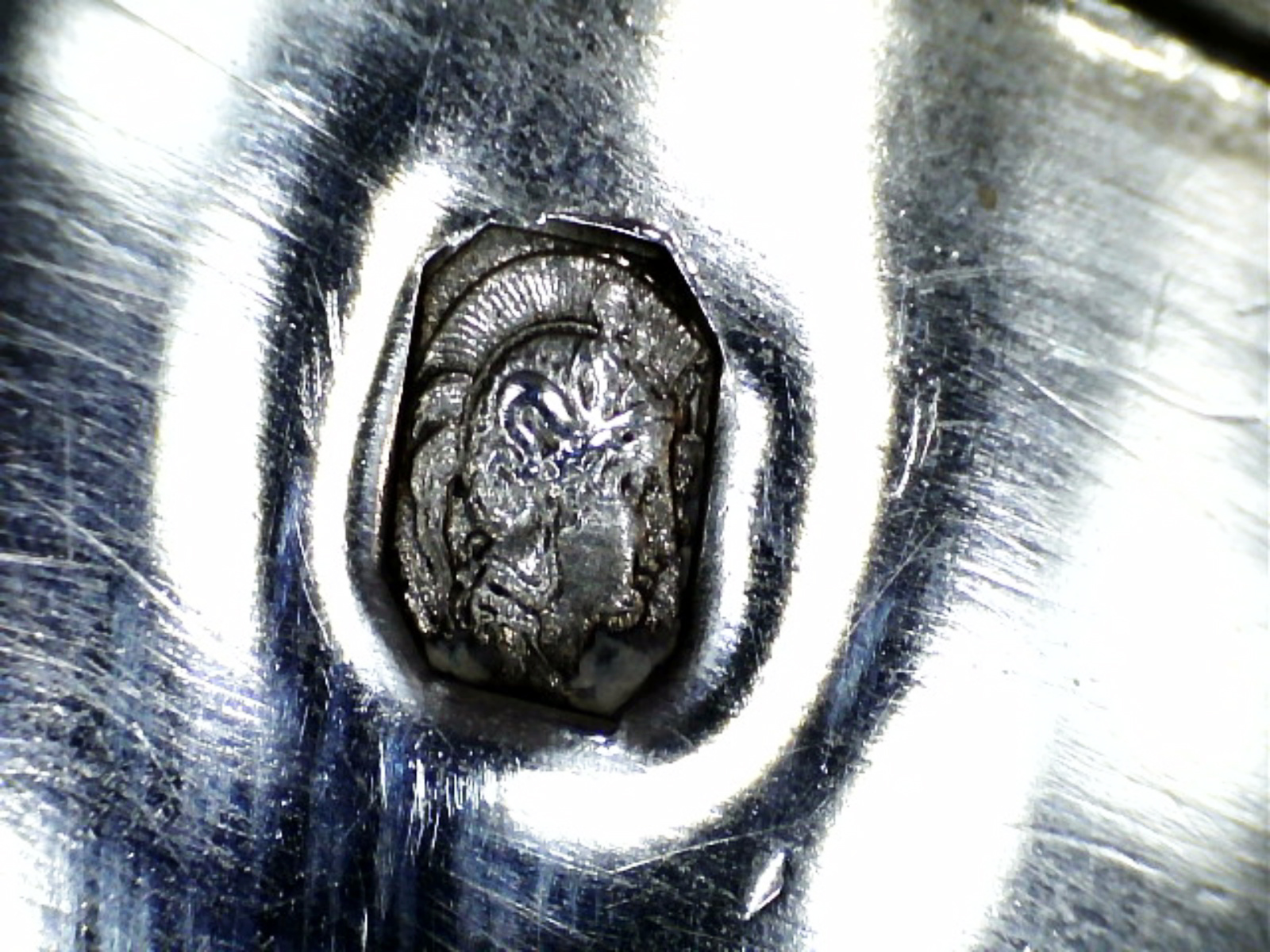 Minerva with helmet and number "1" at the top right. Guarantee control of 950/1000 silver fineness.