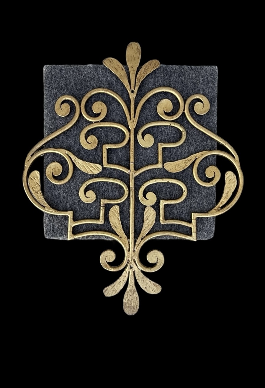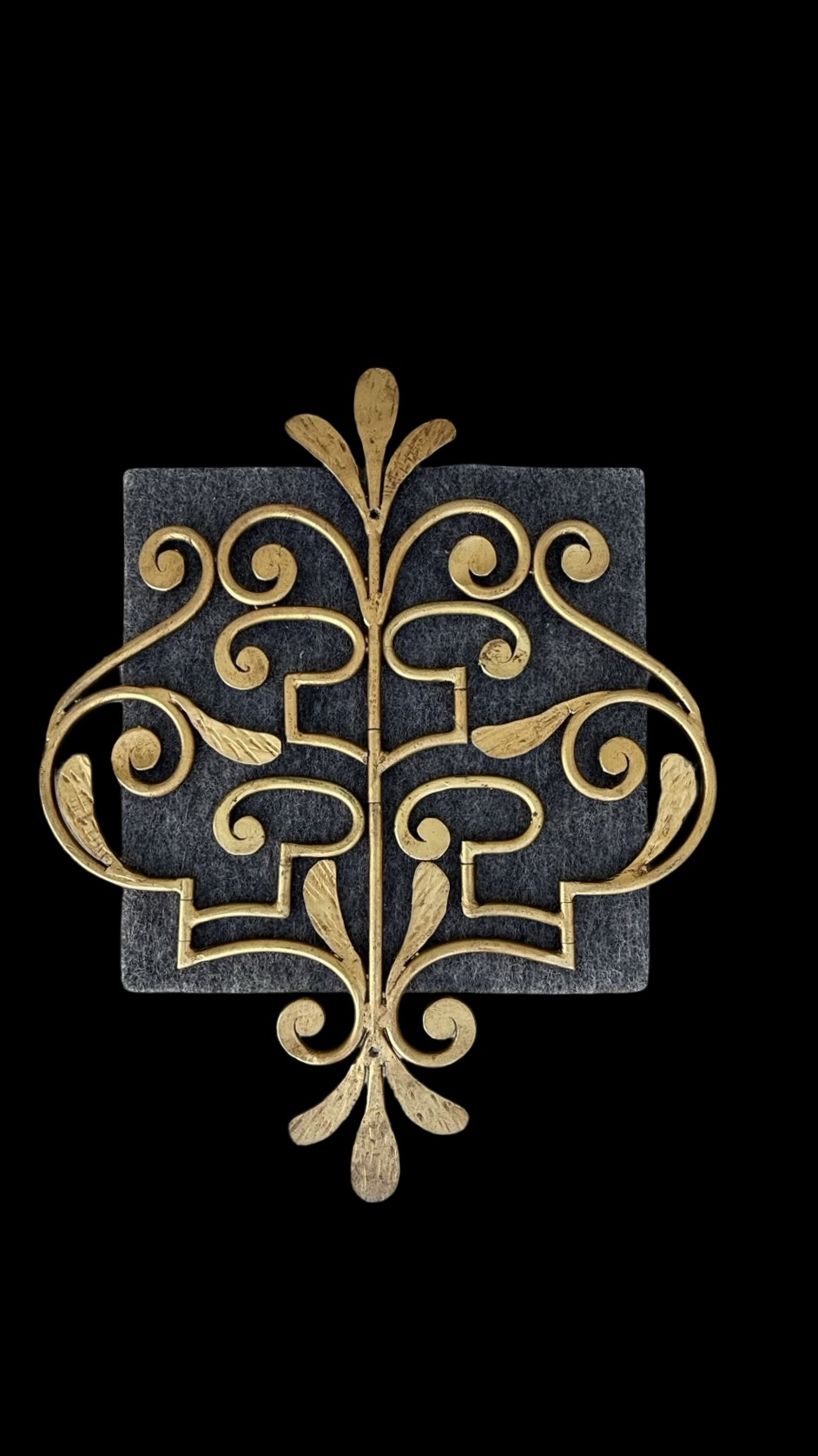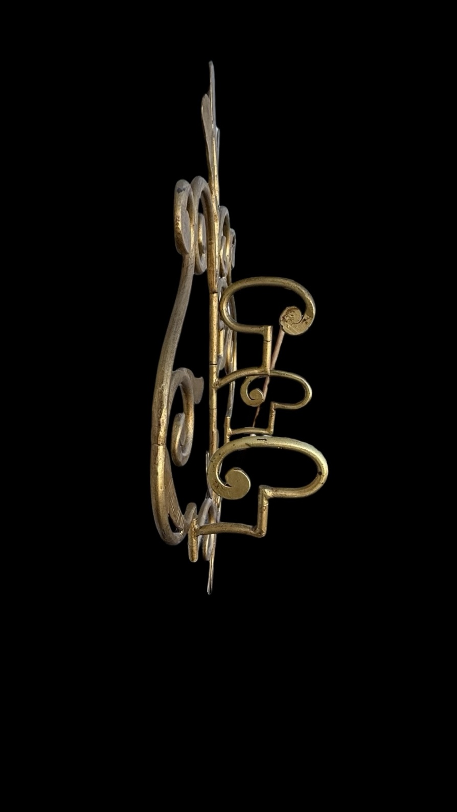 Wrought iron and gilded coat rack wall light with stylized vegetal motifs and three rotating parts. Cm 58x47. Depth of open rotating parts: cm 13.