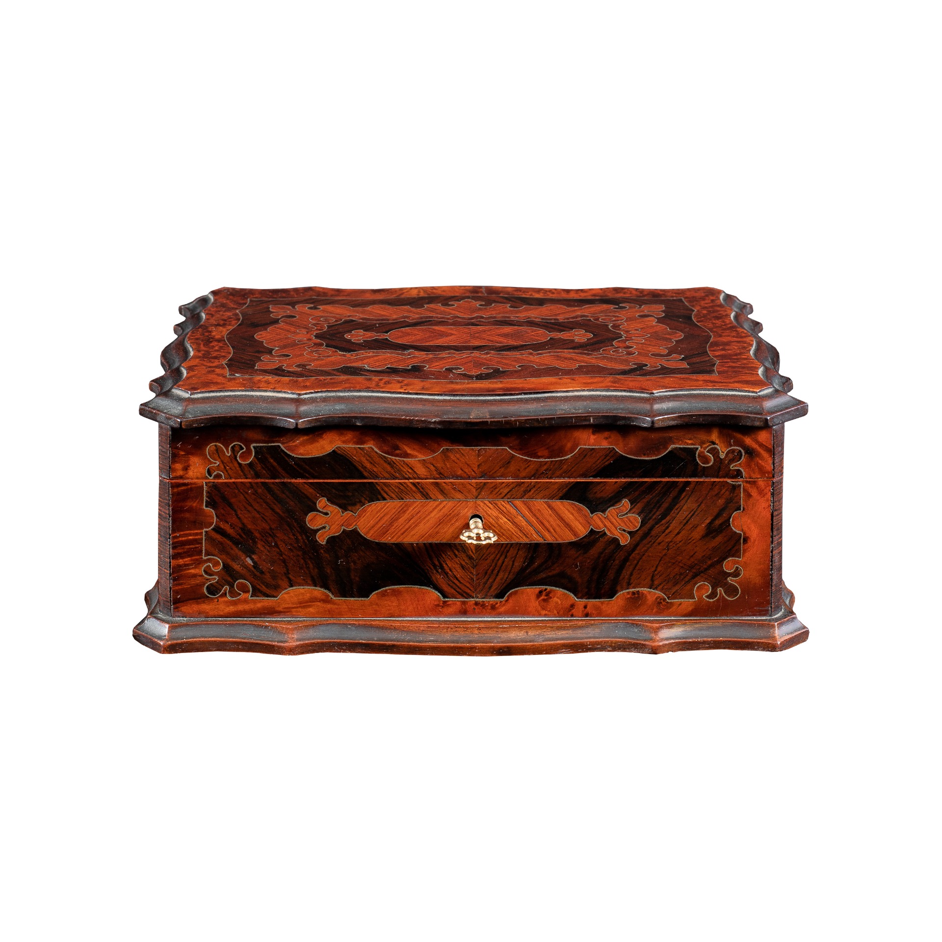 Carved and veneered wooden box. Italy, early 20th century.