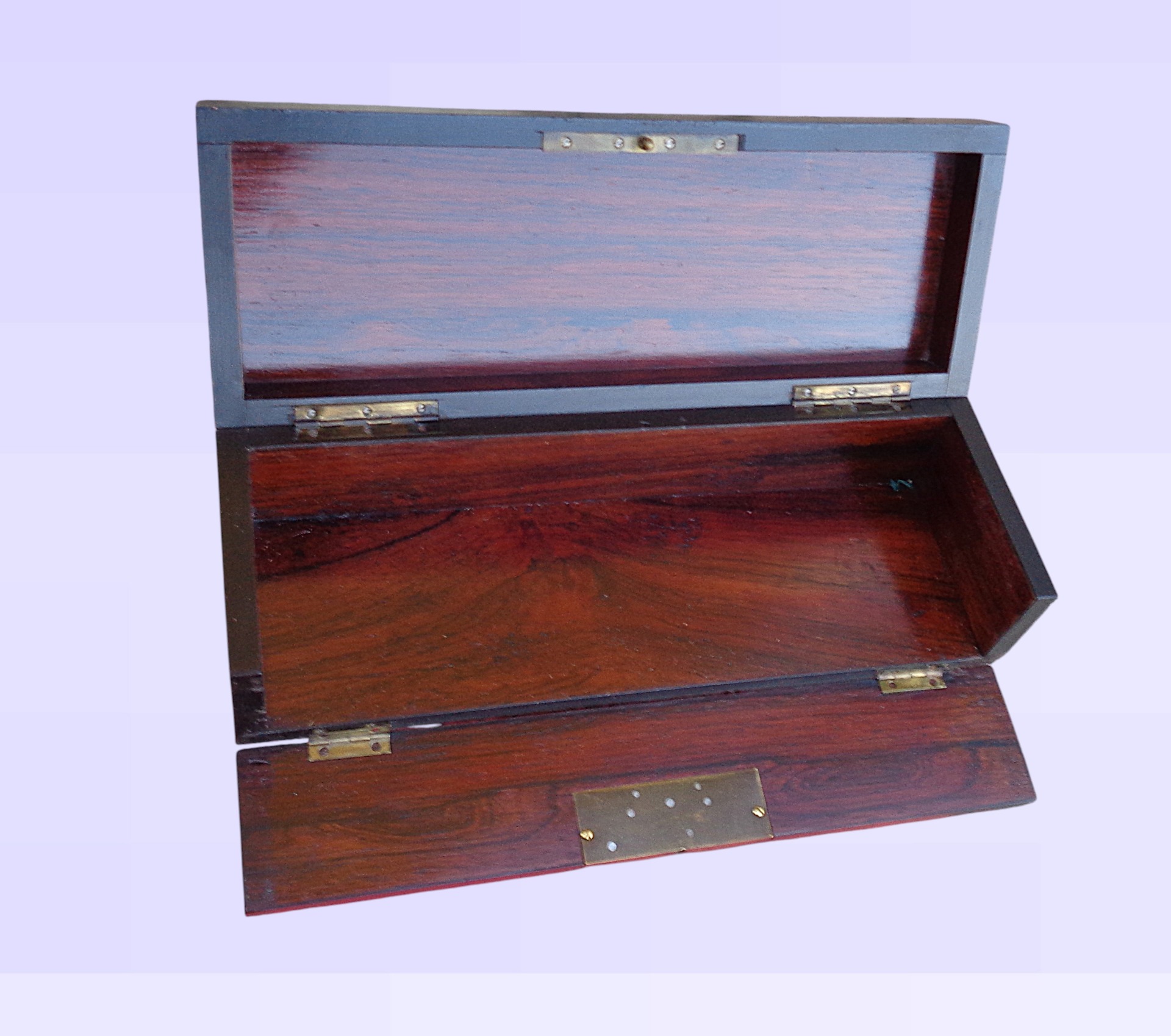 Napoleon III glove box with brass inlays and rosewood thread on the lid. Dimensions 29 x 10.4 h 8.5