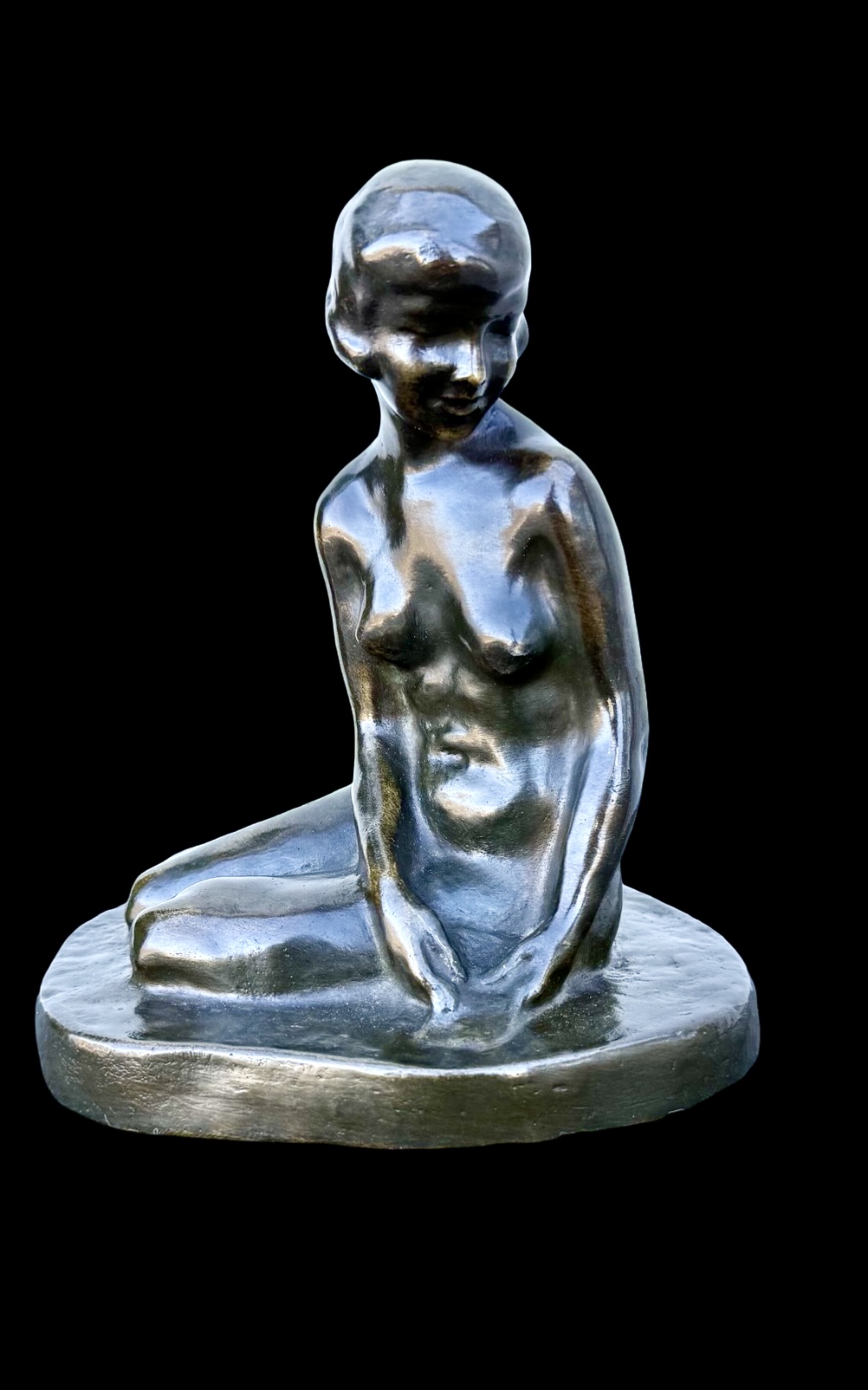 Bronze sculpture depicting a seated female nude. France. Signed by the author and the Parisian foundry. h: 20 cm. Base: 19x18 cm.
