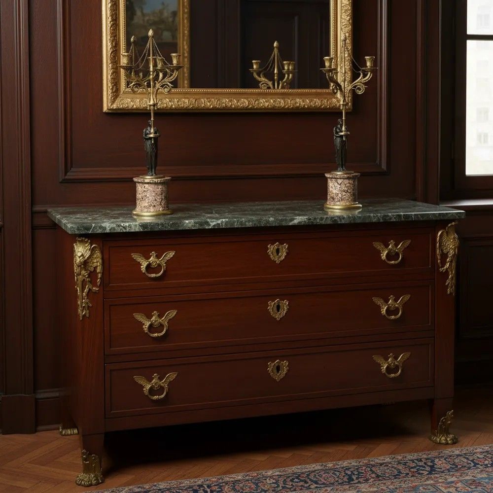 Questa coppia di candelabri Impero in bronzo patinato e dorato trasporta chiunque nel cuore della Francia del XIX secolo, un'epoca di eleganza e raffinatezza. Realizzati a mano da abilissimi artigiani, i candelabri rappresentano lo splendore e la sontuosità dell'impero francese.Materiali raffinati: bronzo patinato e dorato, con dettagli in marmo.Design unico: ogni dettaglio è curato per catturare l'essenza dell'eleganza classica.Storia e Stile: appartenenti all'epoca impero, questi pezzi sono vere opere d'arte.Perfetti per aggiungere un tocco di lusso alla vostra casa, questi candelabri sono ideali sia per collezionisti sia per amanti del design.Stile: Impero Materiale: BronzoAltezza (cm): 66Larghezza (cm): 14Profondità (cm): 14Epoca: XIX Secolo - 1800