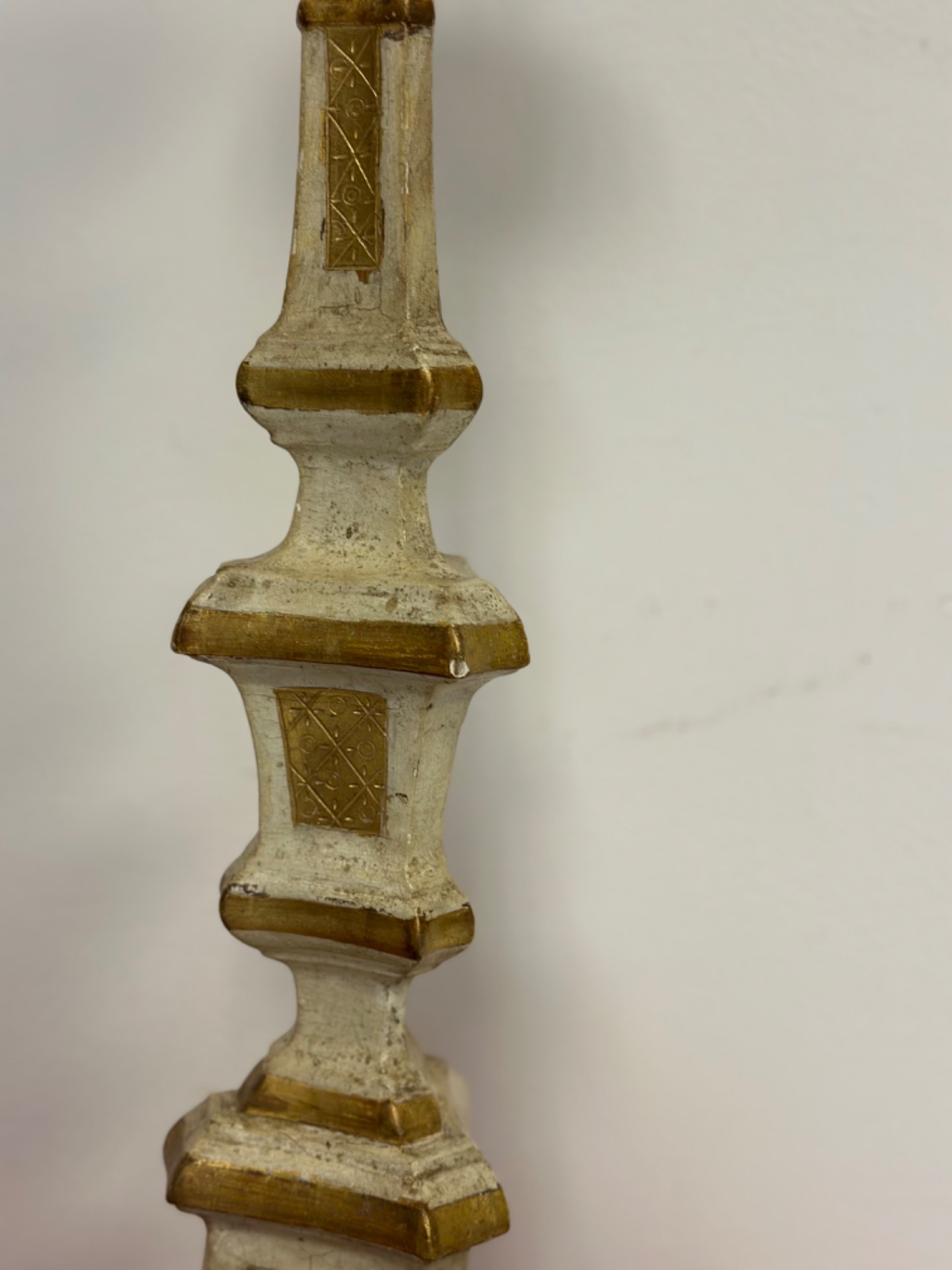 Louis XV candlestick in carved and gilded wood, dating back to the first half of the 18th century from the Emilia Toscana area.