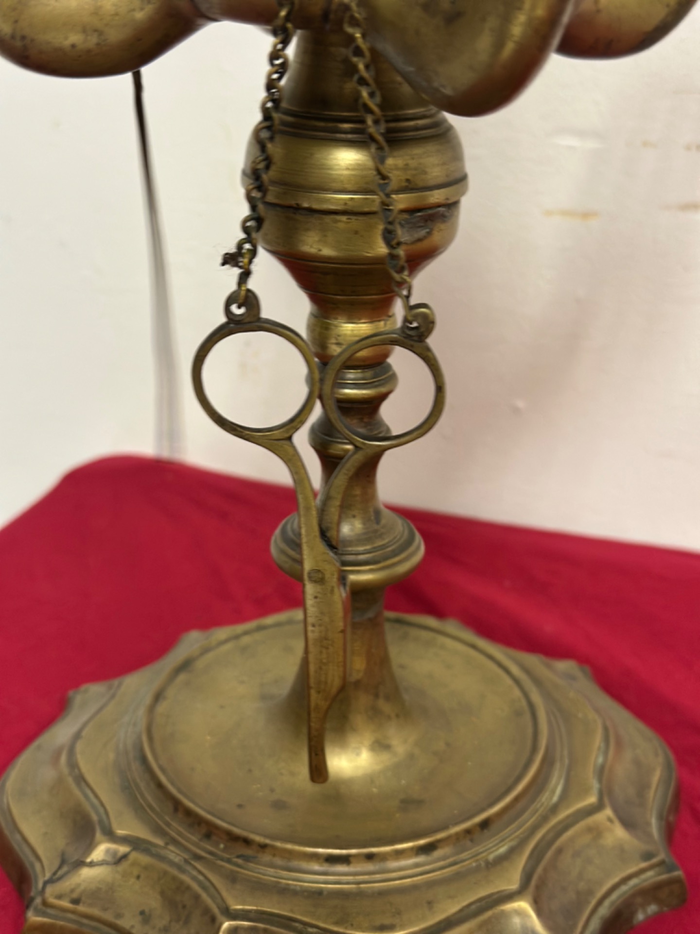 Pair of antique Florentine bronze oil lamps from the first half of the 18th century, complete with all their pieces.