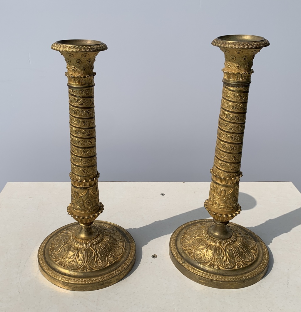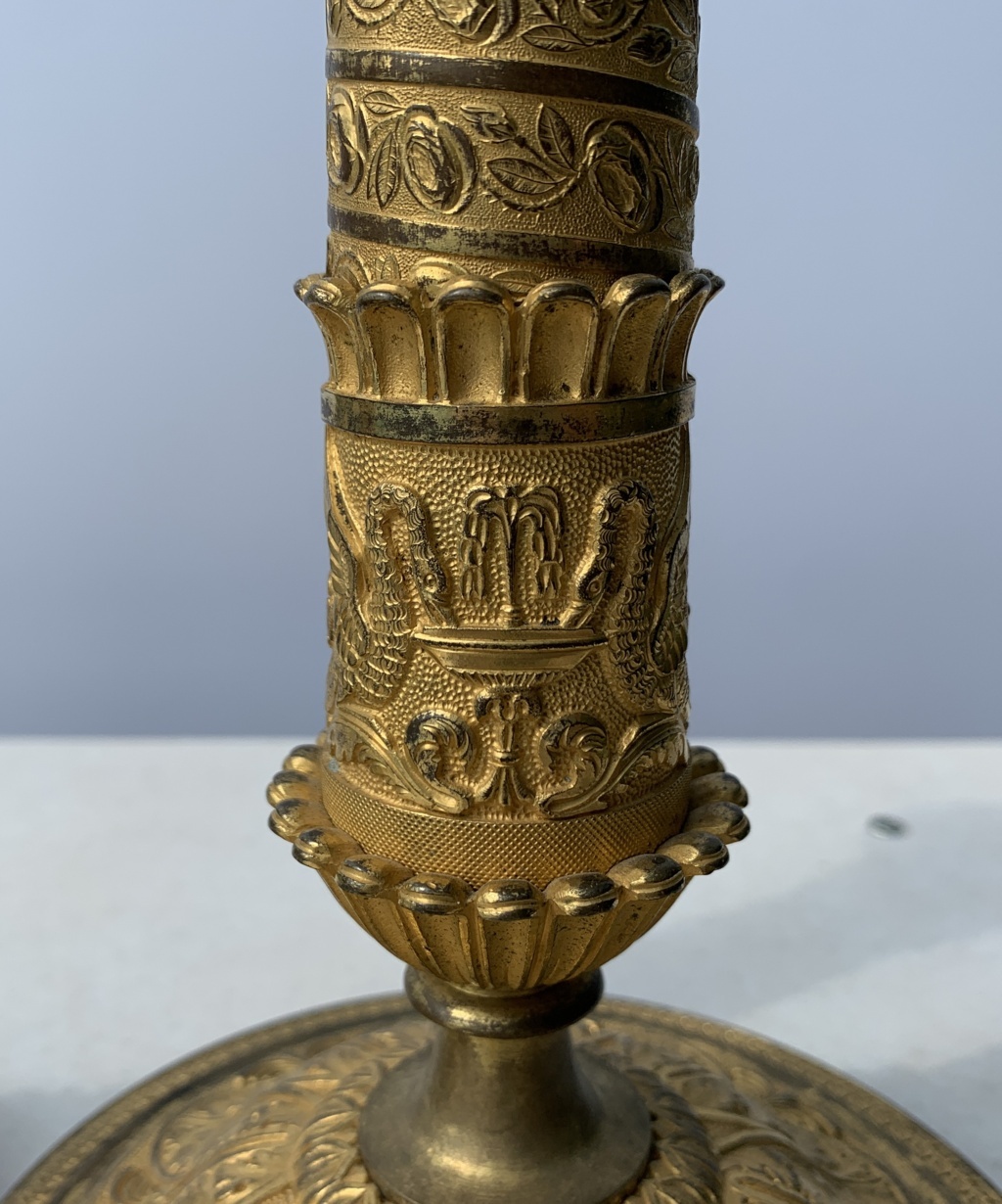 Pair of gilded bronze candlesticks. Paris, early 19th century.