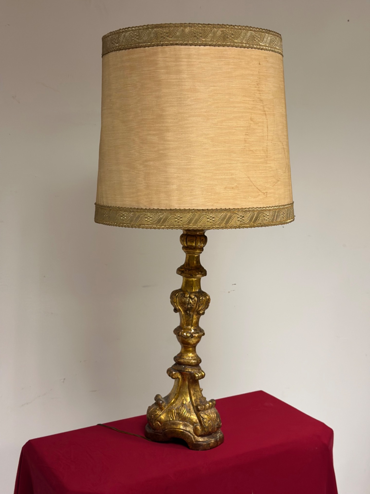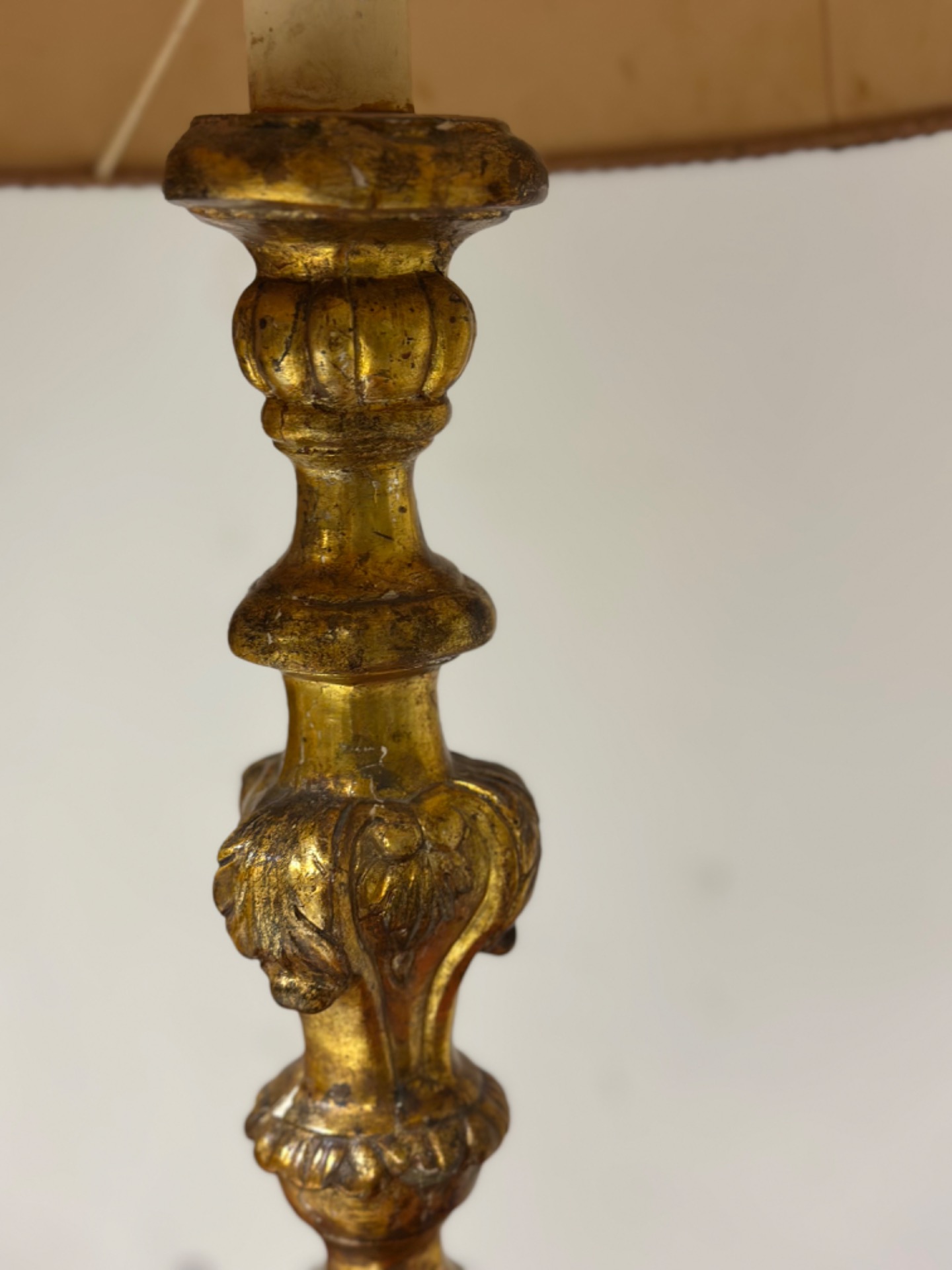 Torcerà in legno intagliato e dorato epoca Luigi XVI fine 700 montata a lampada e completa di paralume Epoca 700 Lombardia Misure : H 80 si certifica la sua autenticità si rilascia fattura di vendita spedizione in tutta Europa non esitate a contattarci accettiamo pagamento pay pal visa Mastercard