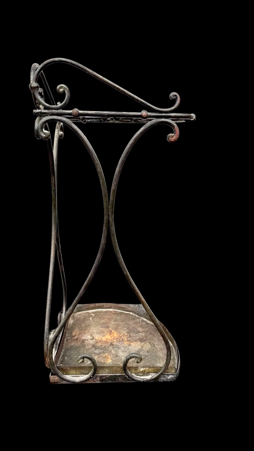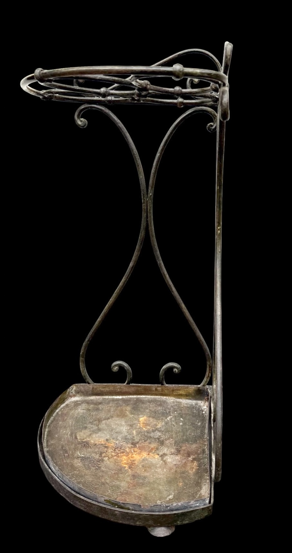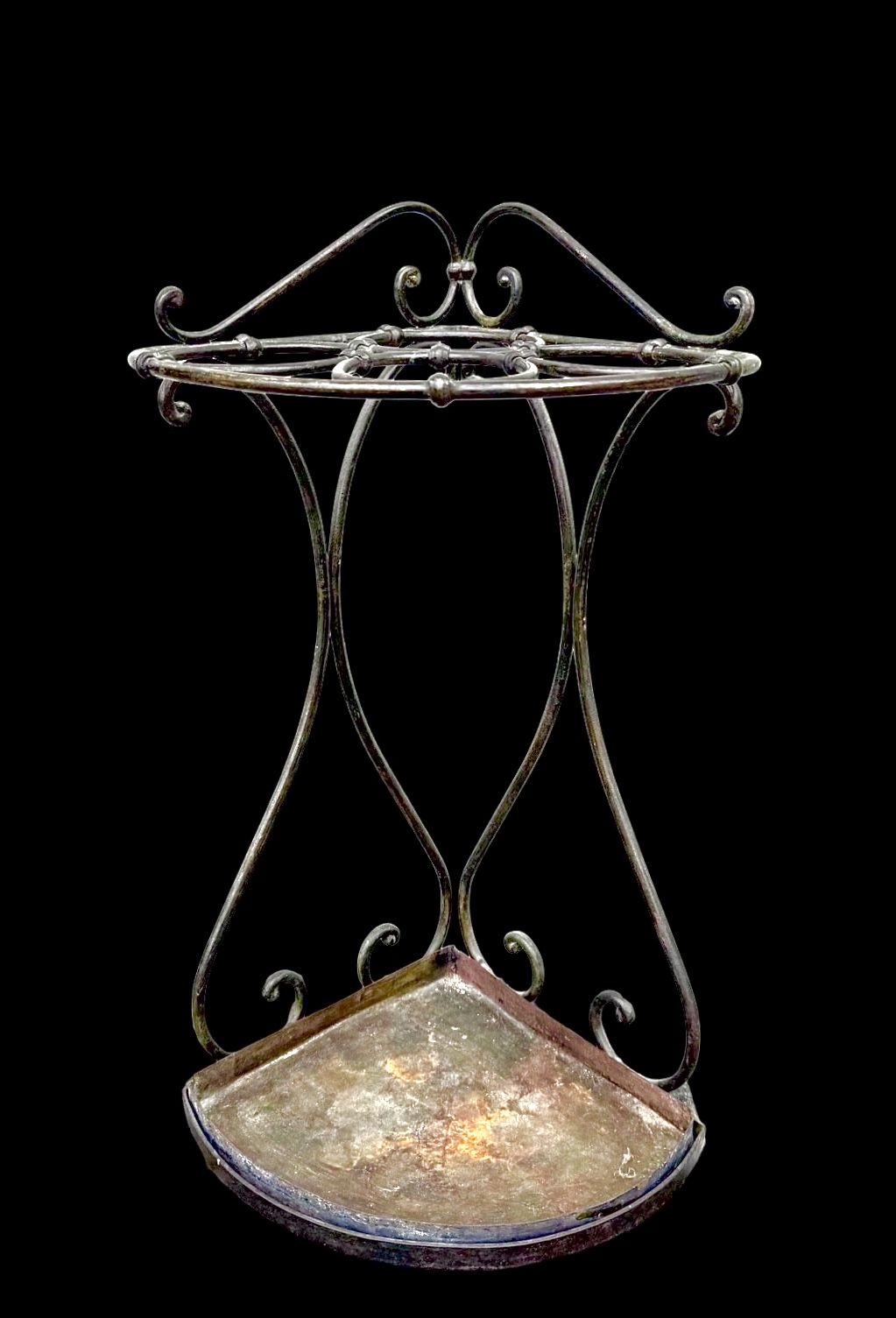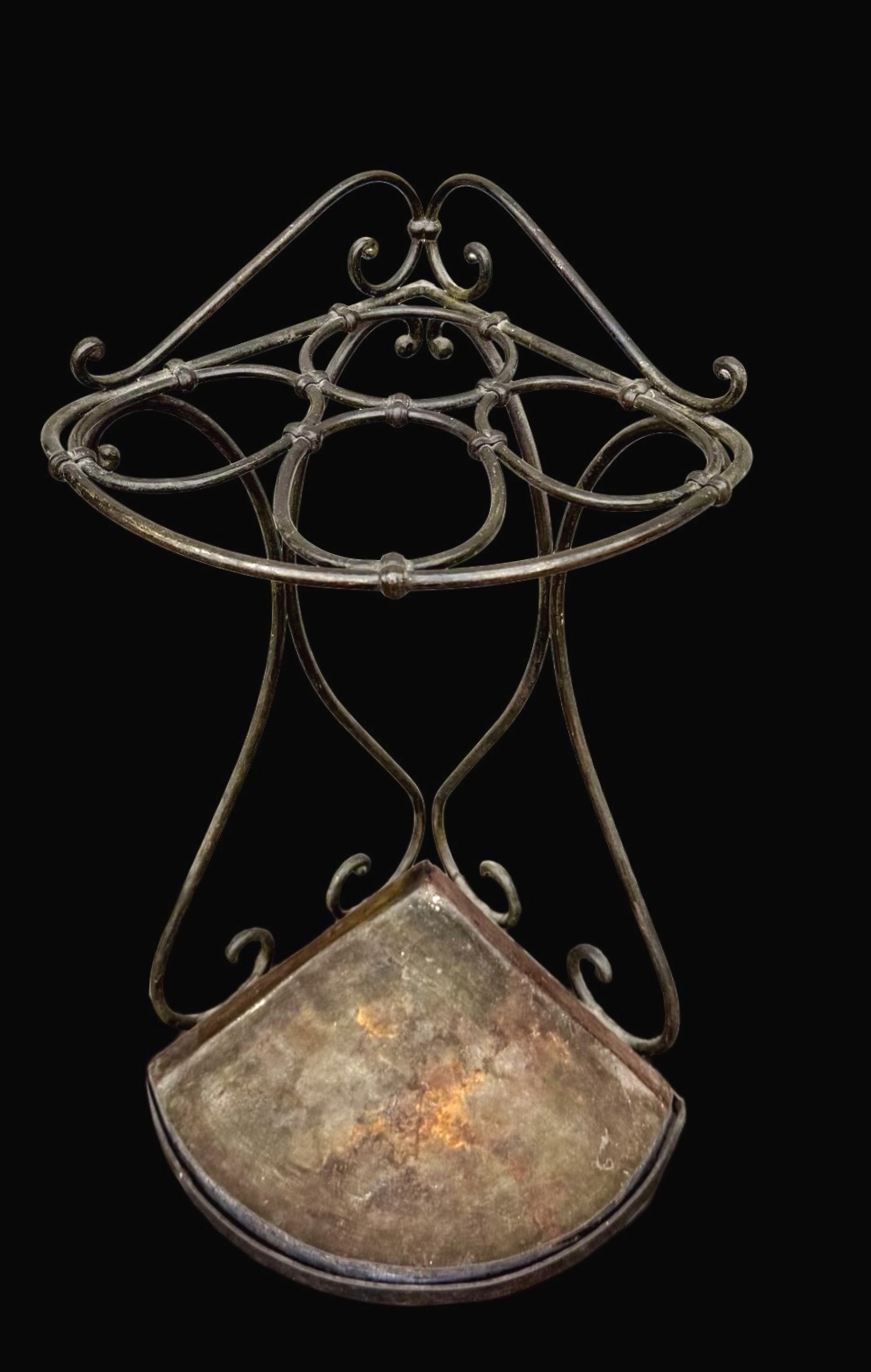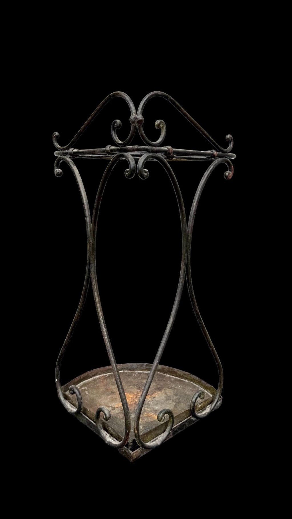 Wrought iron umbrella-cane stand with triangular base and 4 upper compartments. H : 60 cm. 33x30 cm. Base: 26x26 cm.