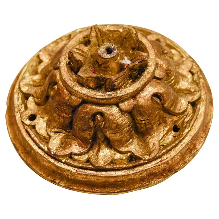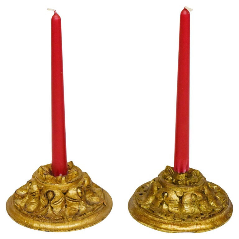 Pair of antique round gilded wooden friezes, with a central insert for the candle: but it can be easily removed because there is only one screw.
