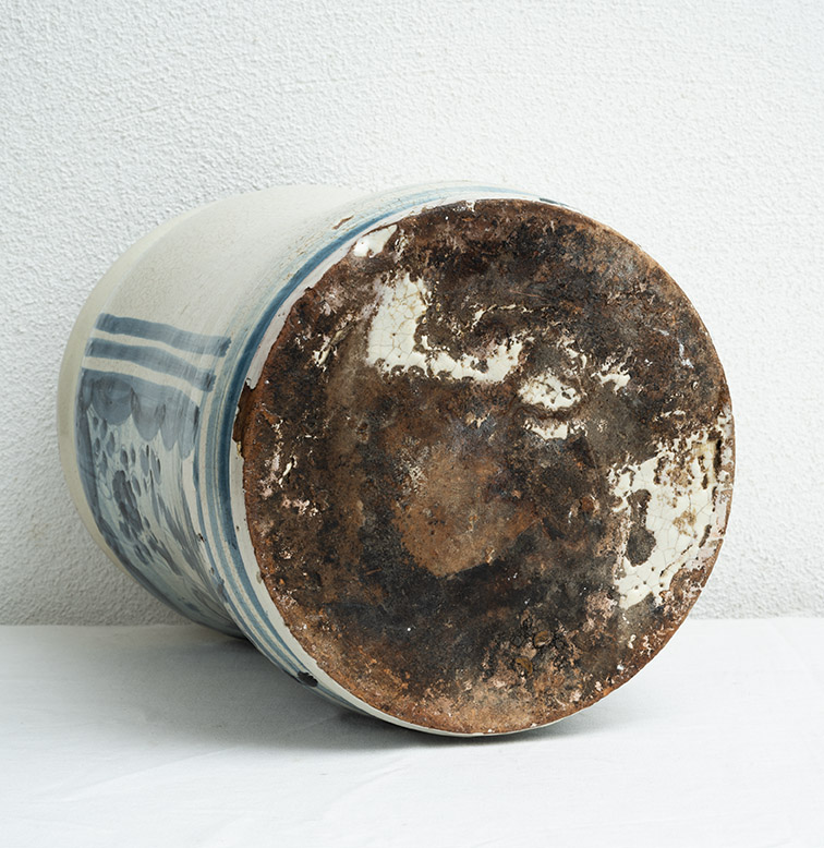 Descrizione: Albarello/Vaso antico in maiolica policroma smaltata di provenienza napoletana appartenente alla metà del XVIII secolo. Il vaso di grande dimensione ha una forma cilindrica rastremata al centro ed è decorato in monocromia blu cobalto tipico della tradizione napoletana....