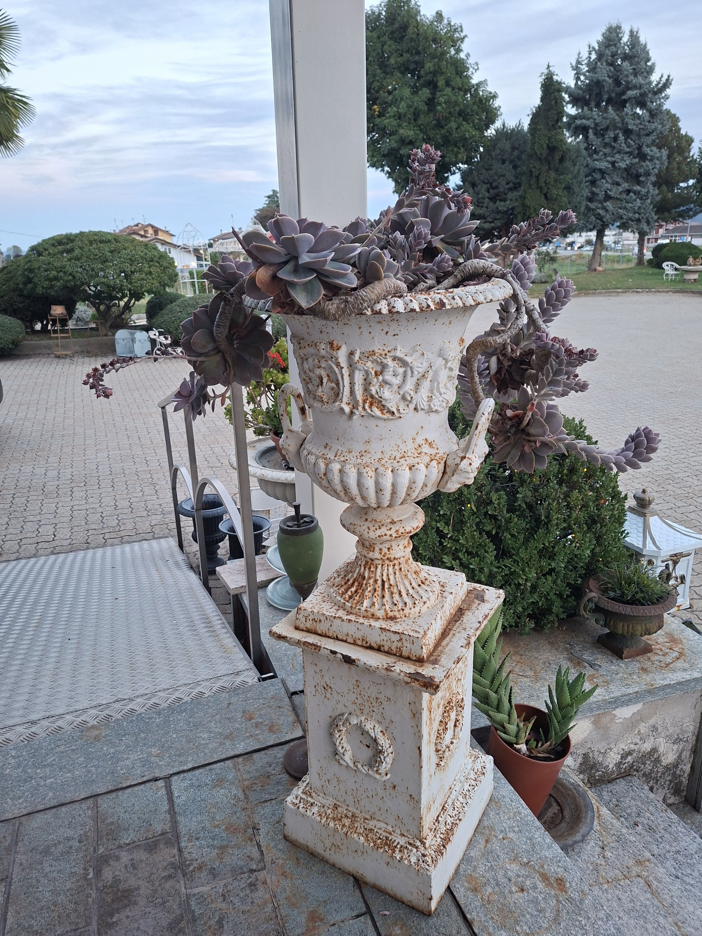 Cast iron vase with pedestal