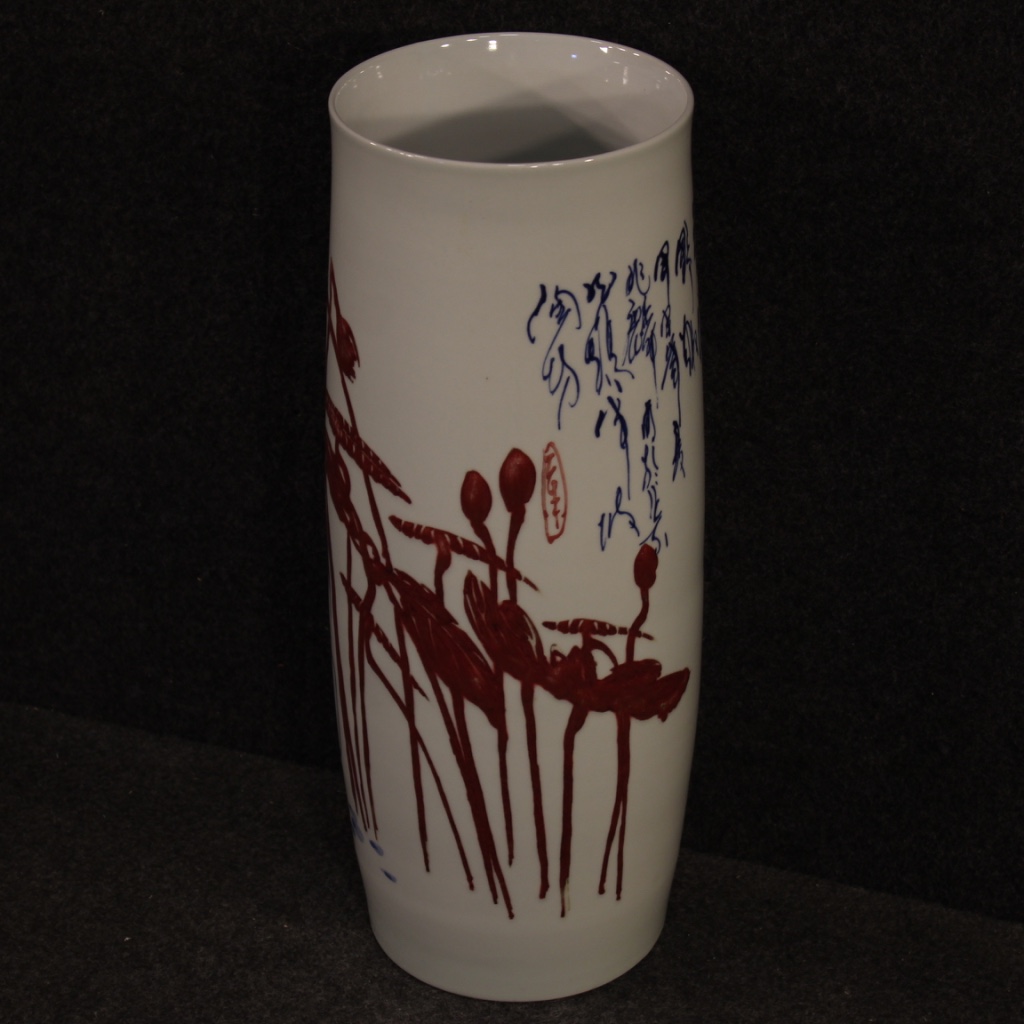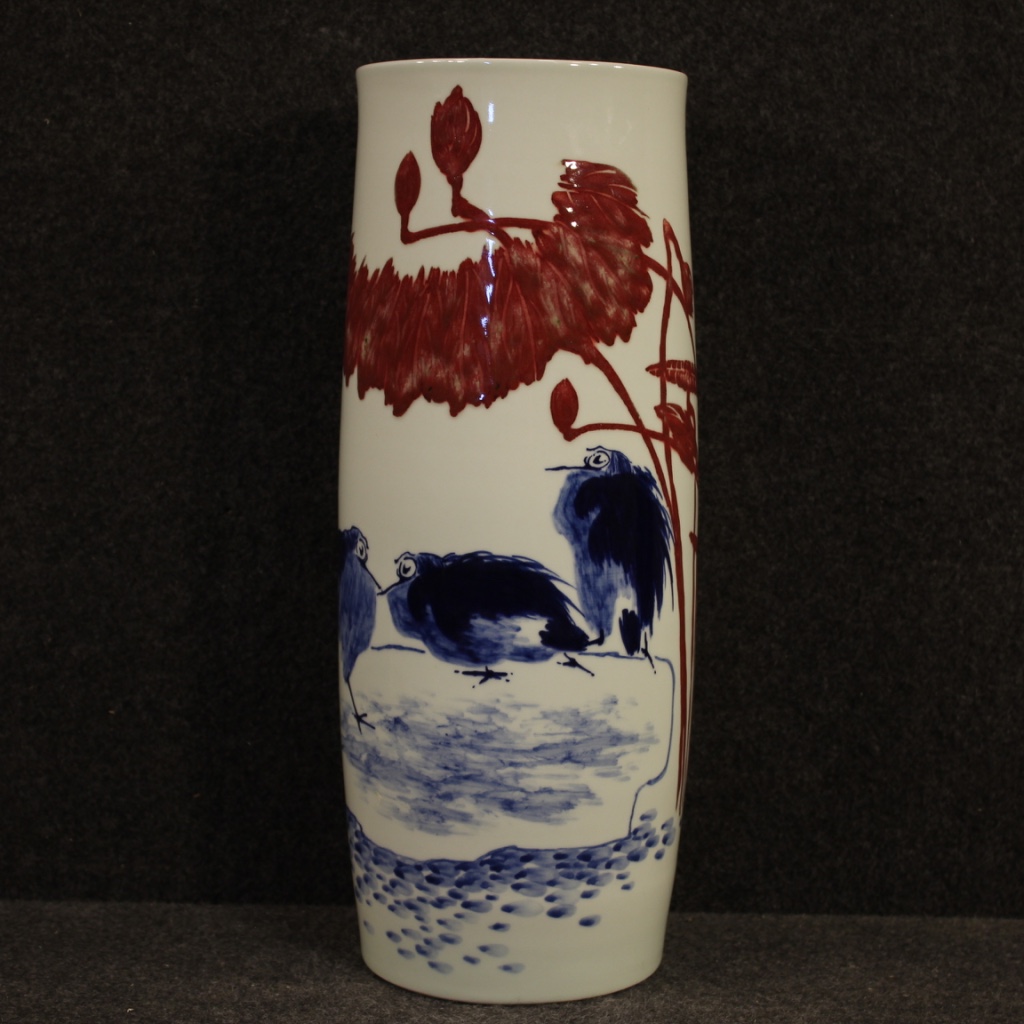 Chinese vase from the early 21st century. Hand-painted ceramic work of Jingdezhen depicting a stylized landscape with excellent quality flowers and animals. Object adorned with Chinese writing (see photo). Vase of beautiful size and ideal decoration to display as a piece of furniture. In good condition, without breakage or chipping.