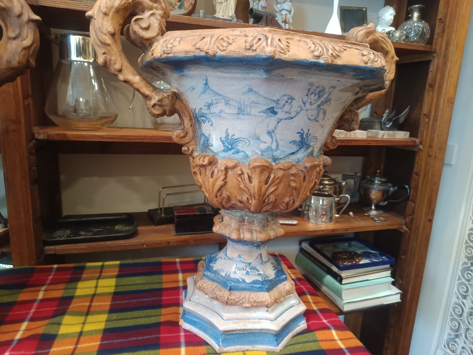 Pair of Baroque-style terracotta vases, partially decorated and entirely handmade by Manetti and Masini of Florence. Measurements: cm 58 x 58