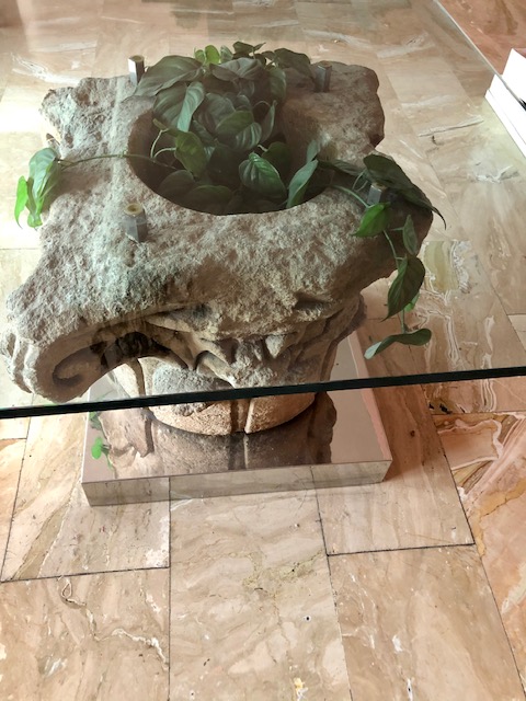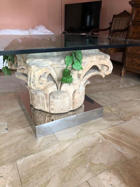 acciaio e sormontato da una lastra di cristallo di 100 cm. di lato.