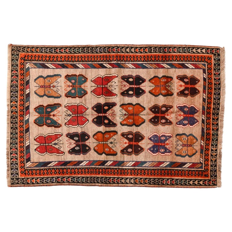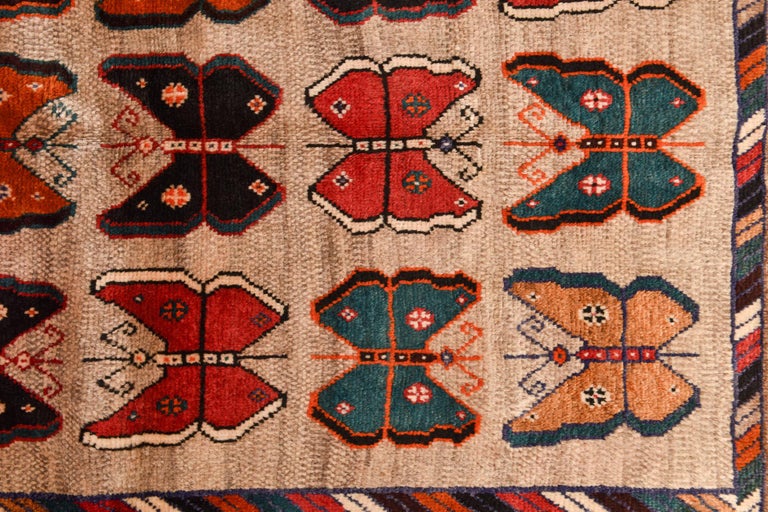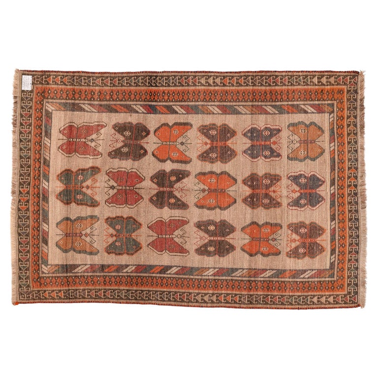 -An incredible piece! 18 polychrome butterflies on a beige background, three small borders with a dense, very precise and accurate design.