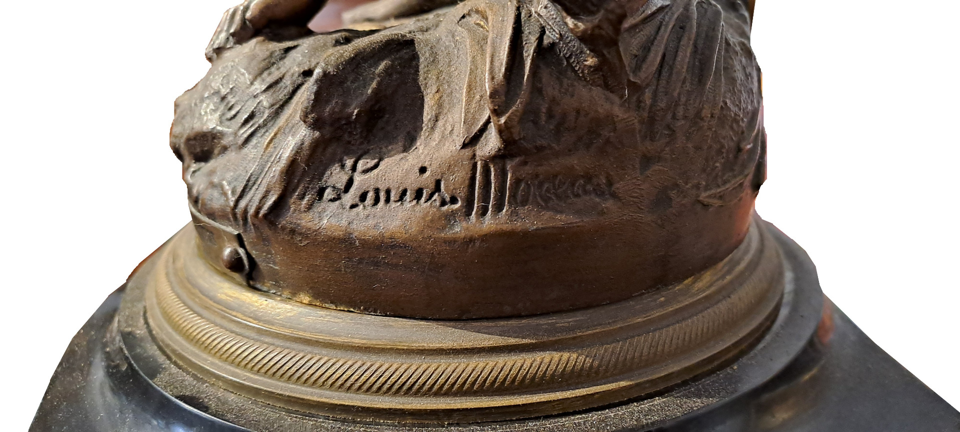 * The patinated antimony sculpture is in excellent antique condition, with a splendid original patina.