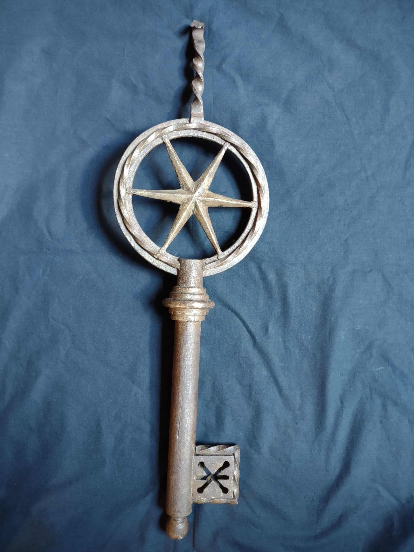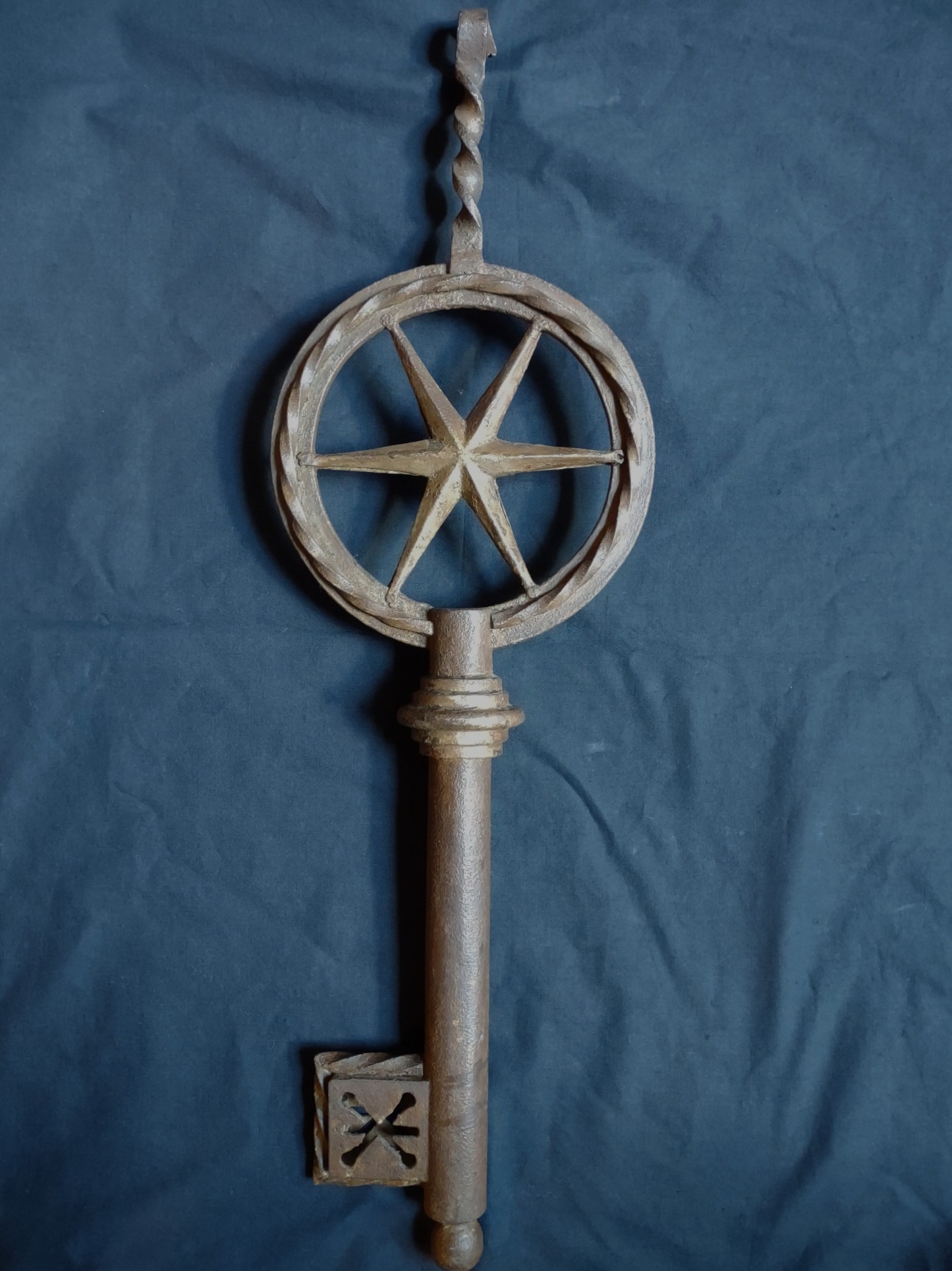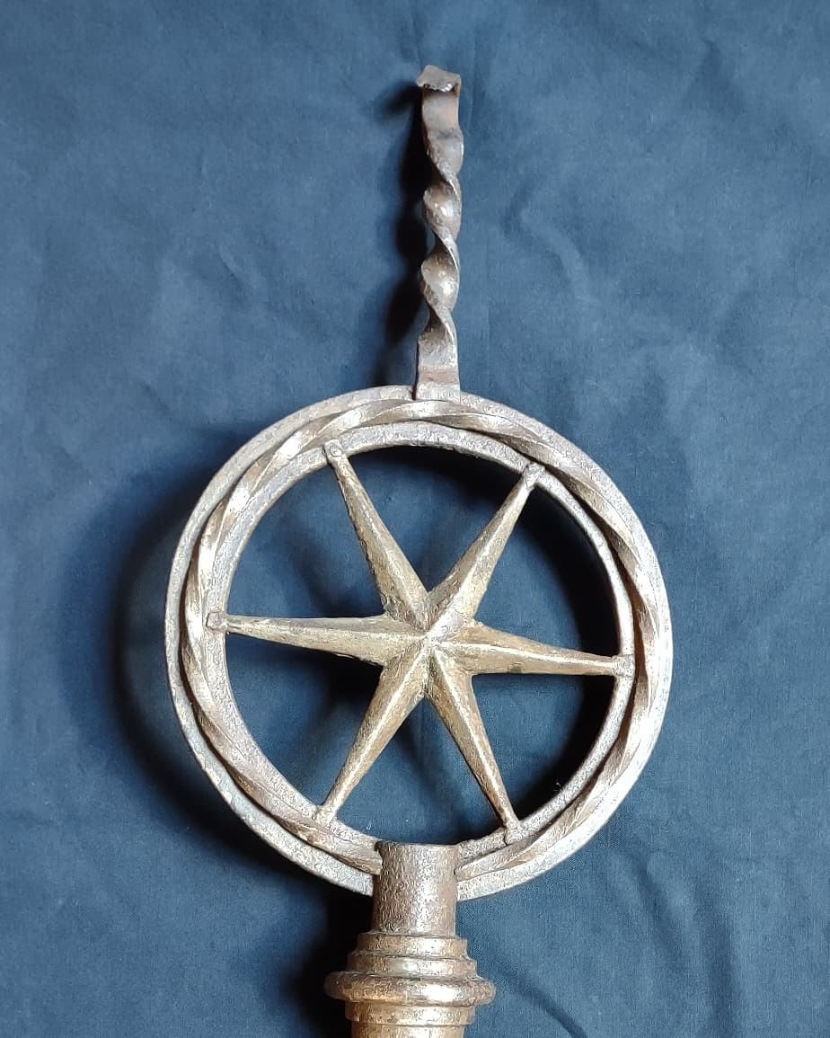 Large locksmith's sign in wrought and assembled iron. Northern Italy, 18th century. Length 61 cm