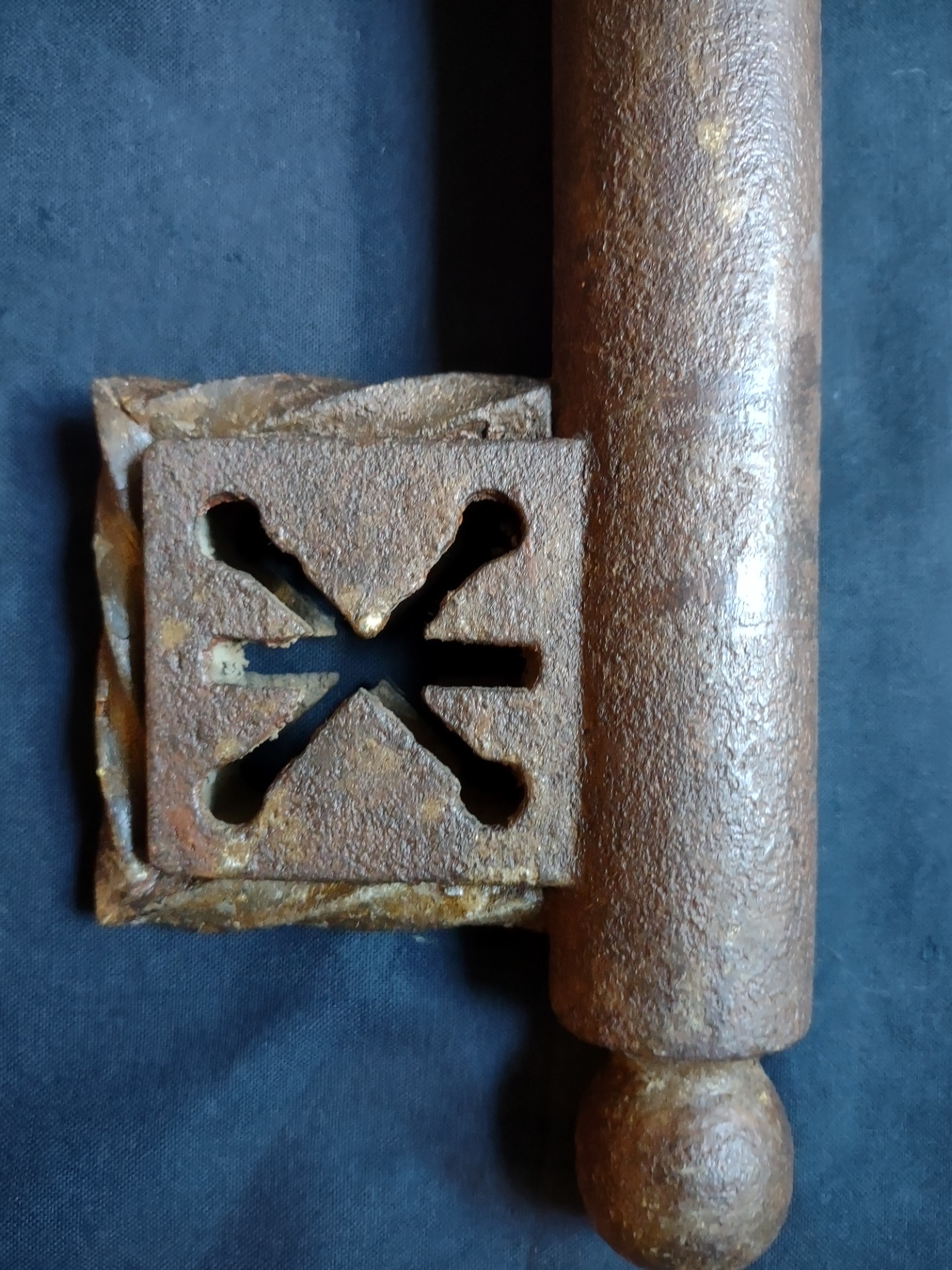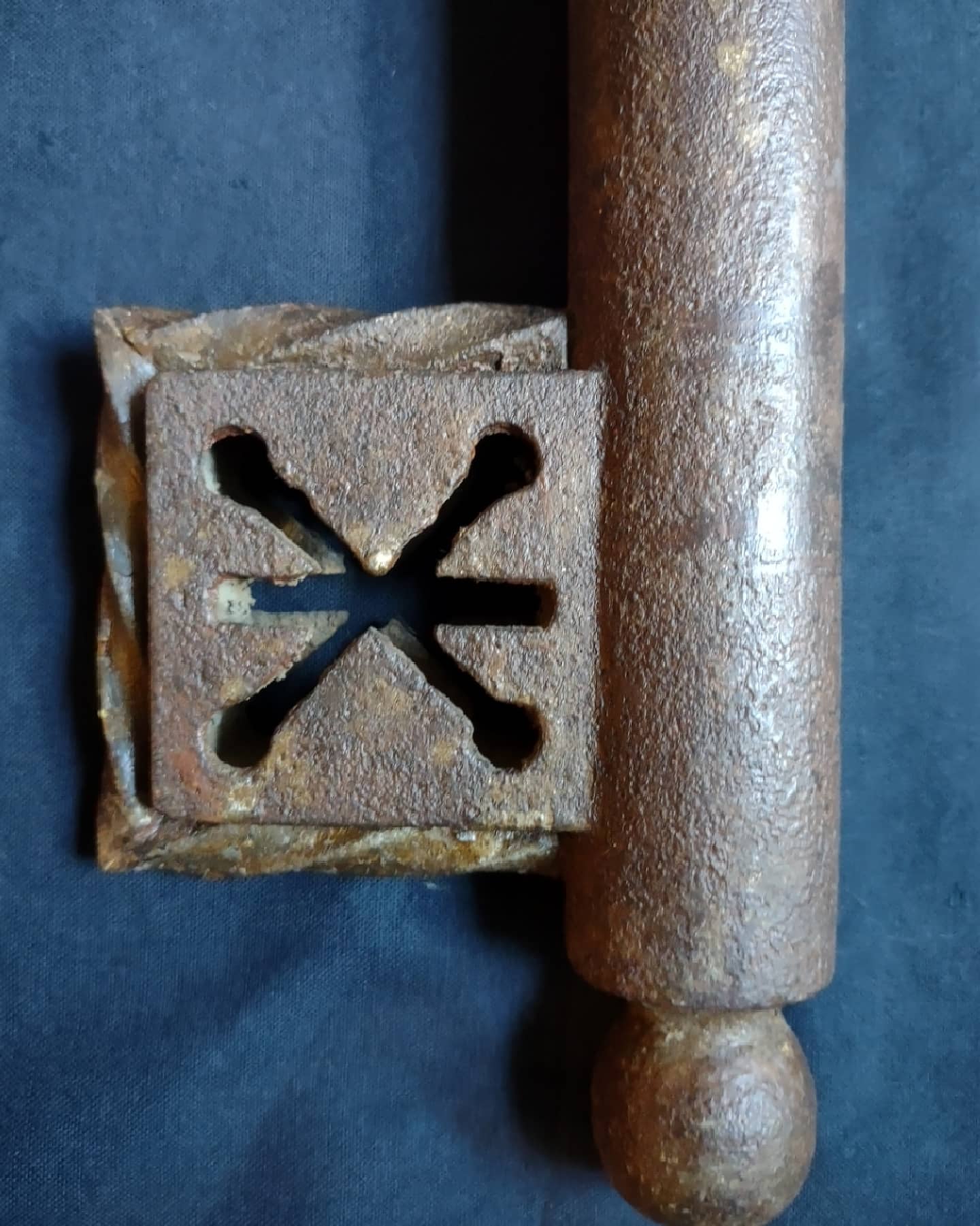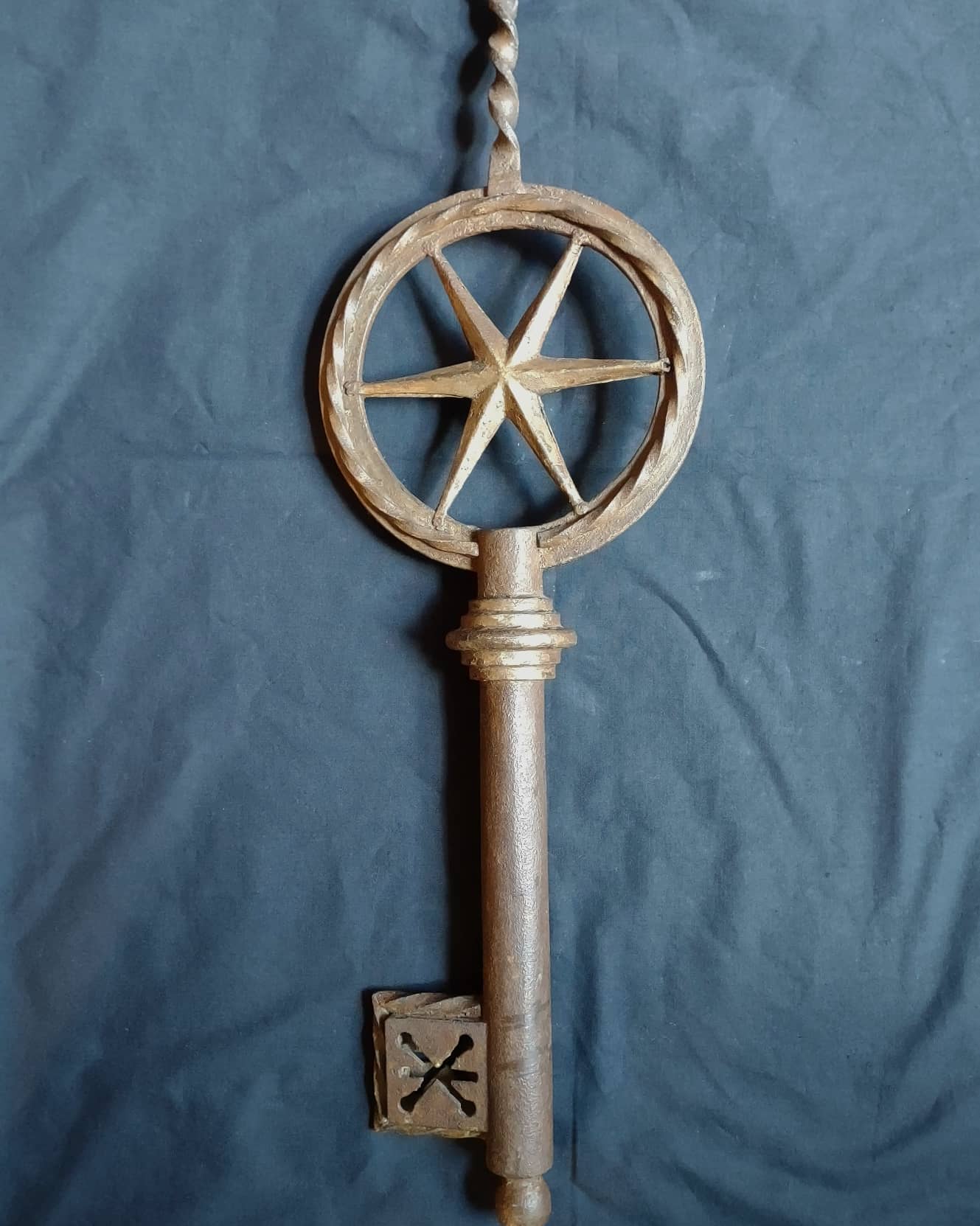Large locksmith's sign in wrought and assembled iron. Northern Italy, 18th century. Length 61 cm