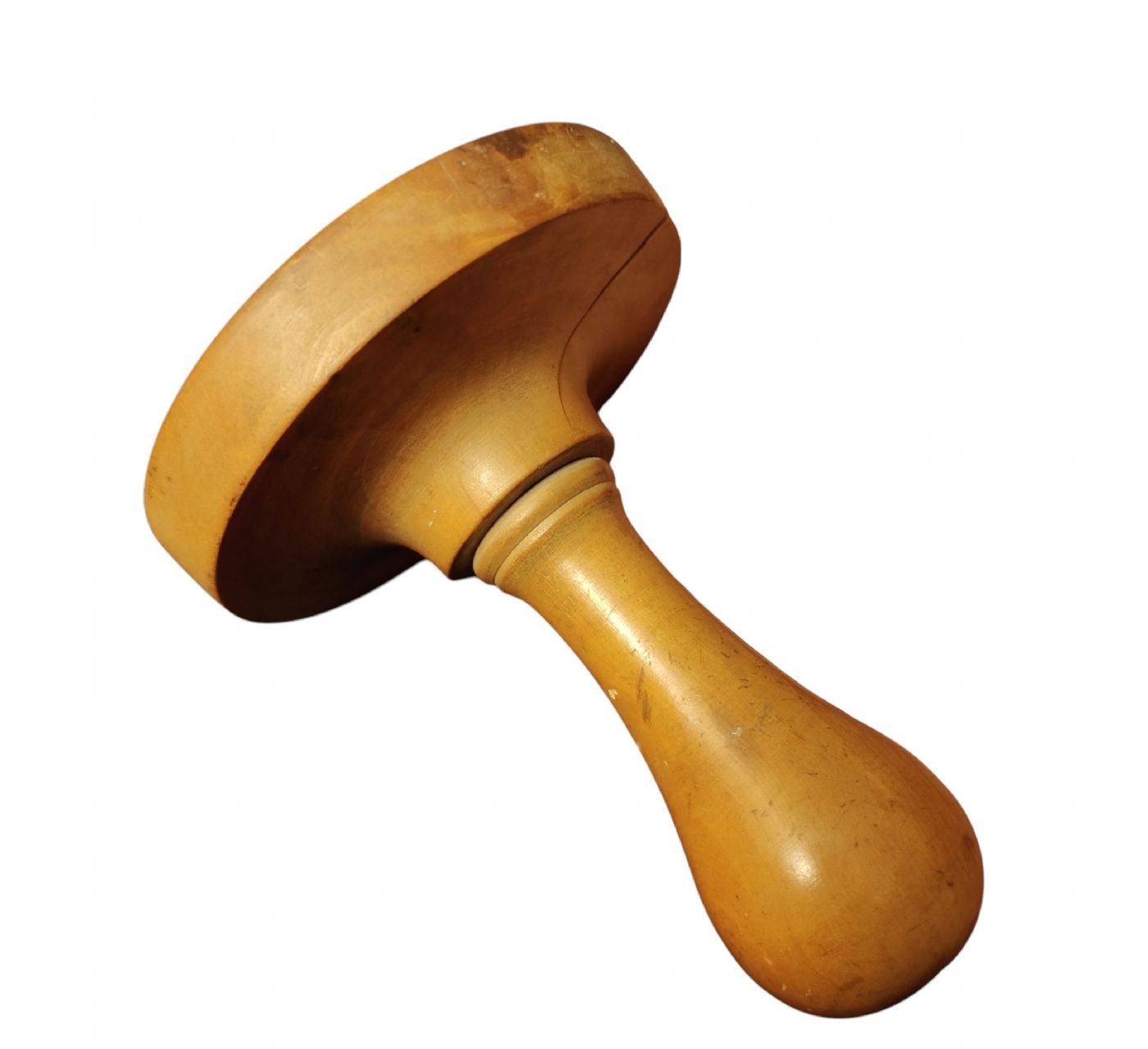 Beautiful cylindrical butter mold with turned handle and hunter decoration