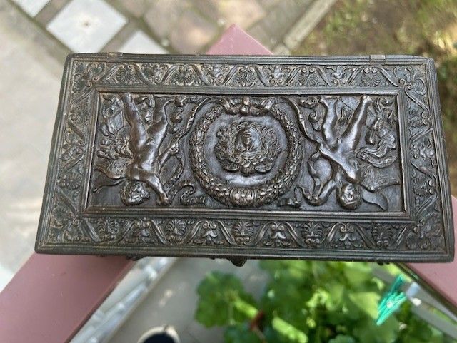 Workshop of Severo Calzetta da Ravenna Depicting centaurs and putti with festoons and garlands of flowers. Dimensions 20 x 11 x 8 cm