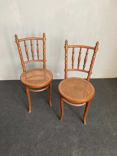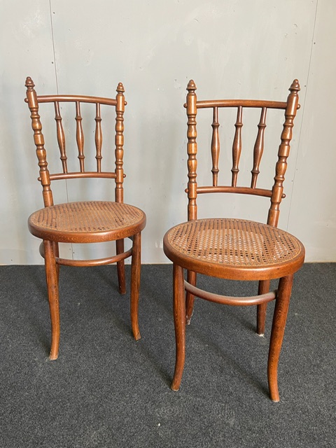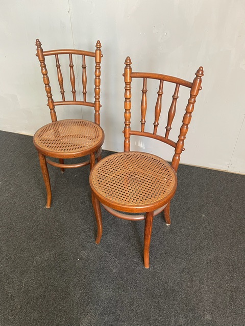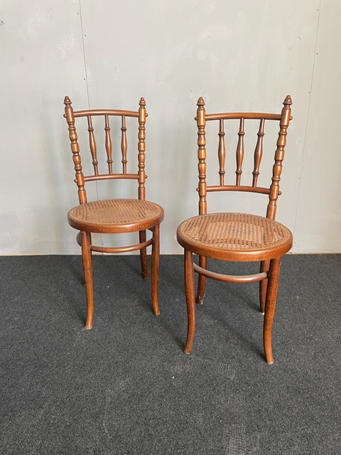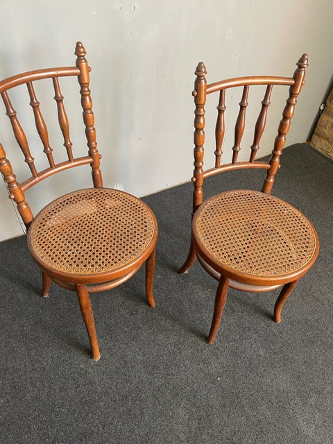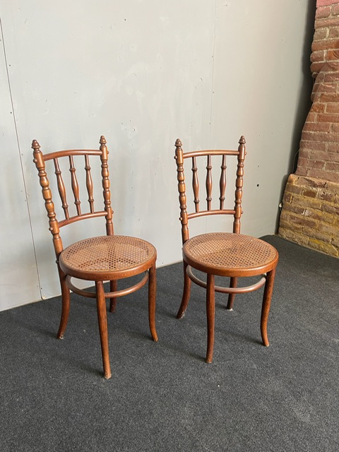 Coppia di sedie Fischel d'epoca in faggio curvato e paglia di Vienna