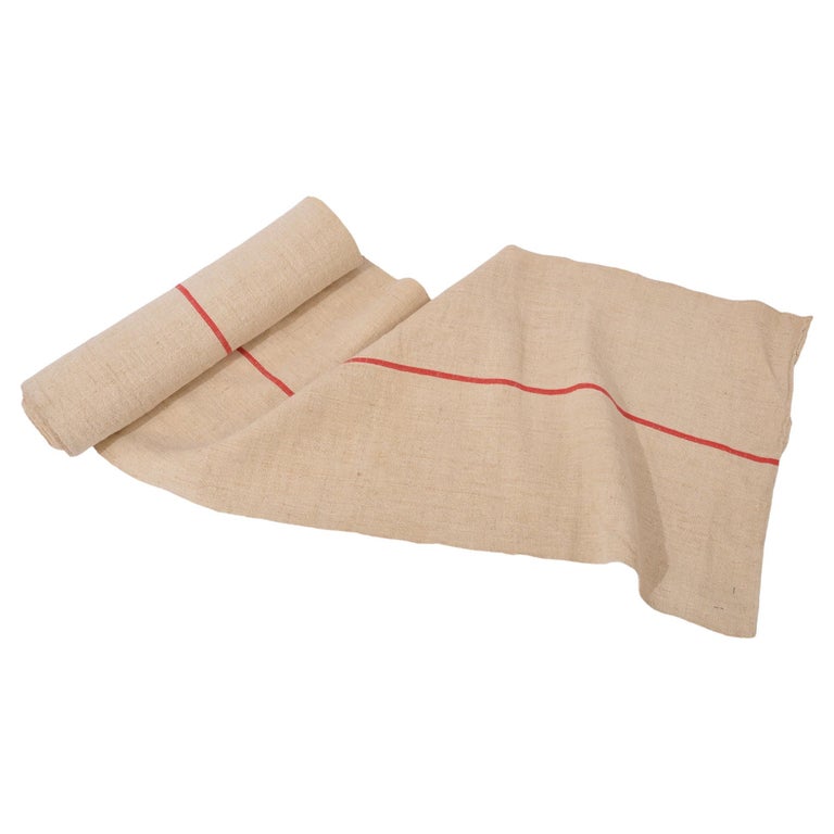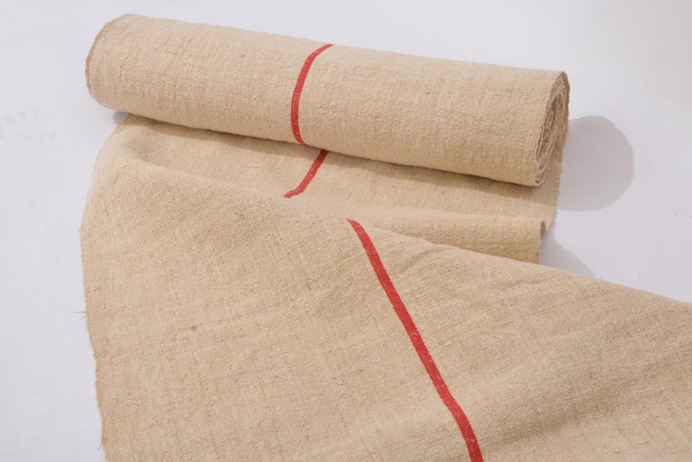 This type of robust and rustic fabric was used in France for making sacks, especially mail sacks. For some years it has been quite well known by interior designers who use it in "casual" furnishings. Usually large sacks are found, but it is quite rare to find rolls like this: perfect for upholstering armchairs.