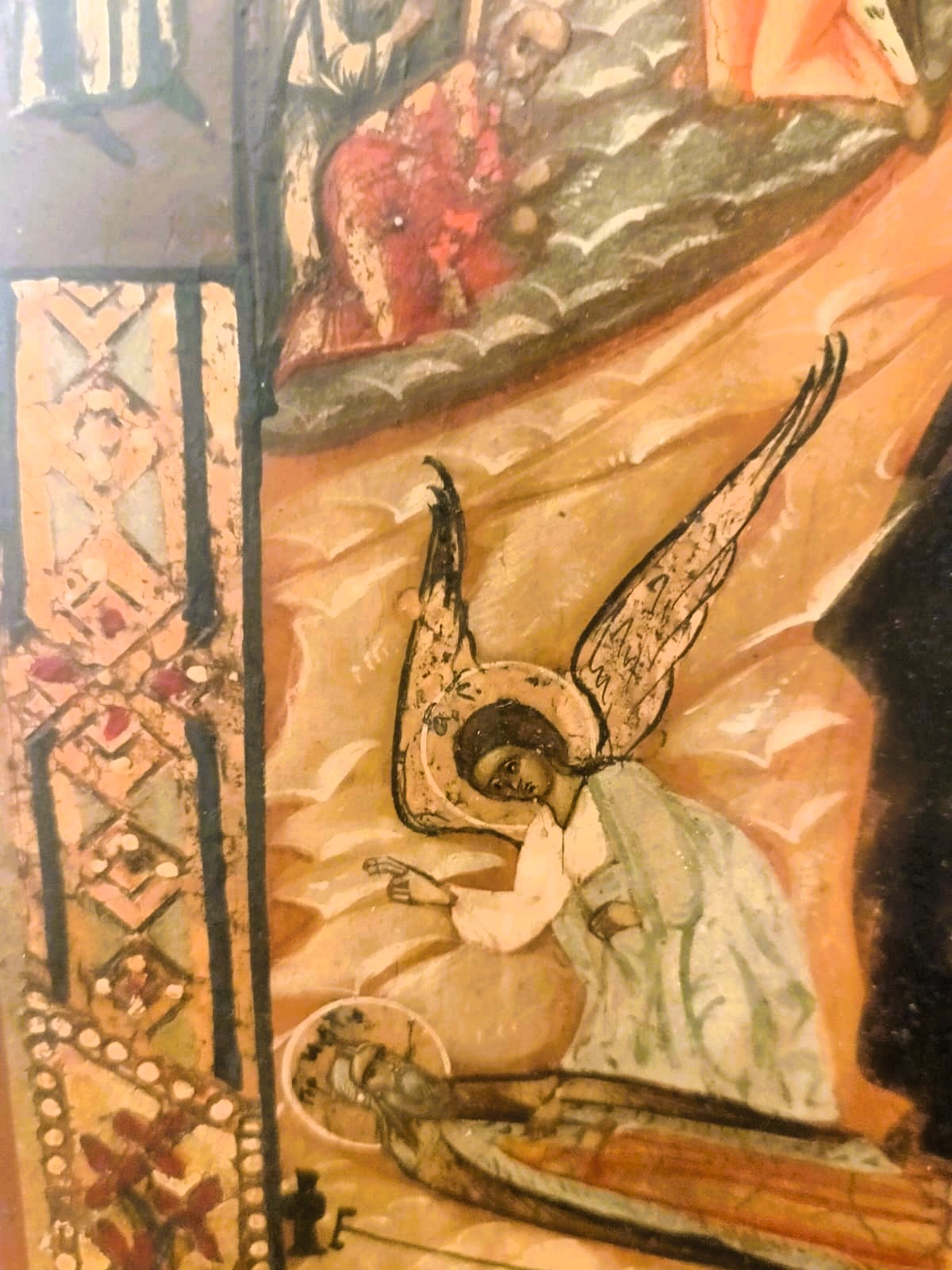 Più in basso, invece, è raffigurata l'apparizione dell'angelo al profeta addormentato prima della salita all'Oreb (1Re 19, 7-8).