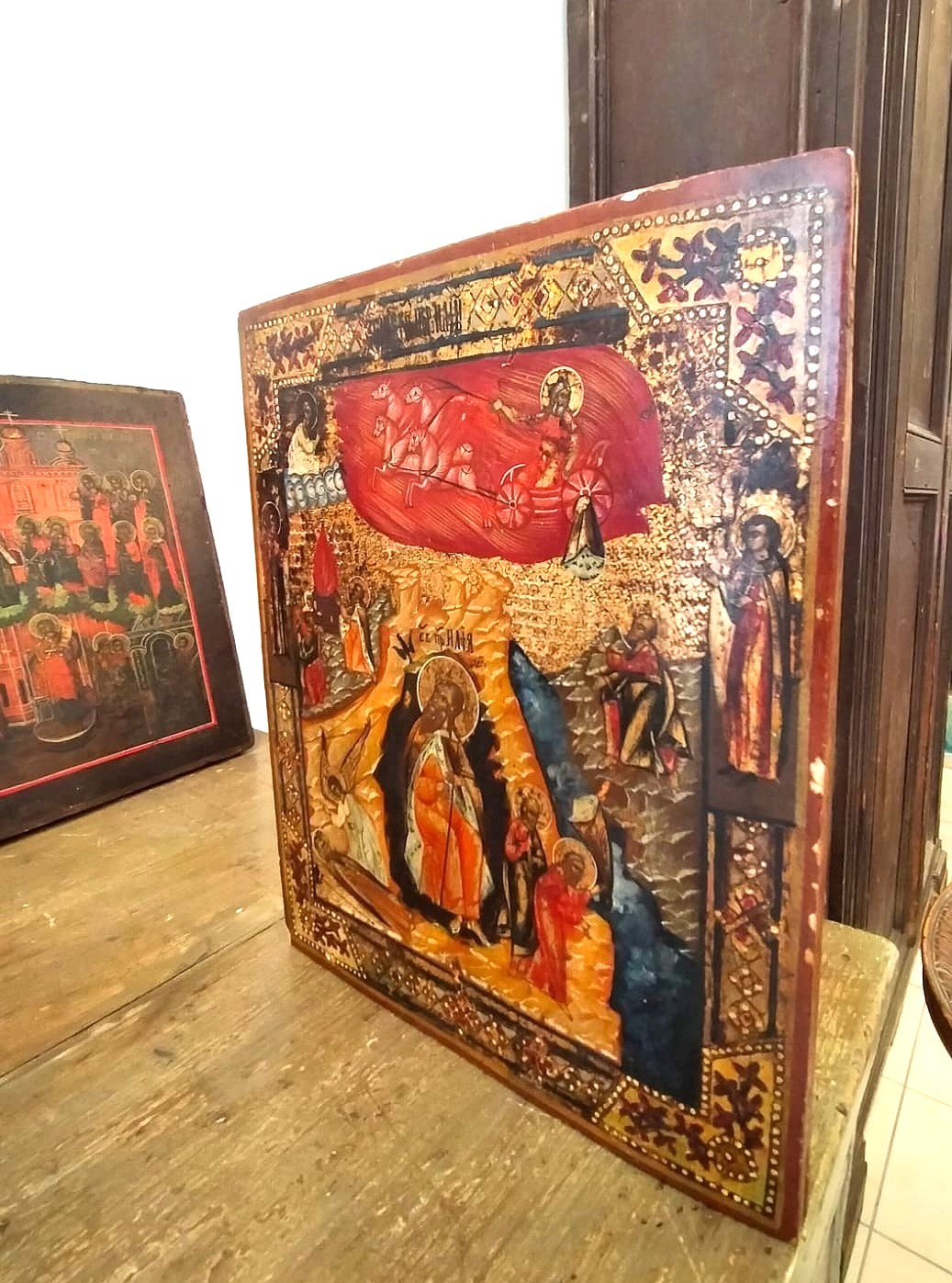 Antica icona russa raffigurante “Il profeta Elia e scene della sua vita”
