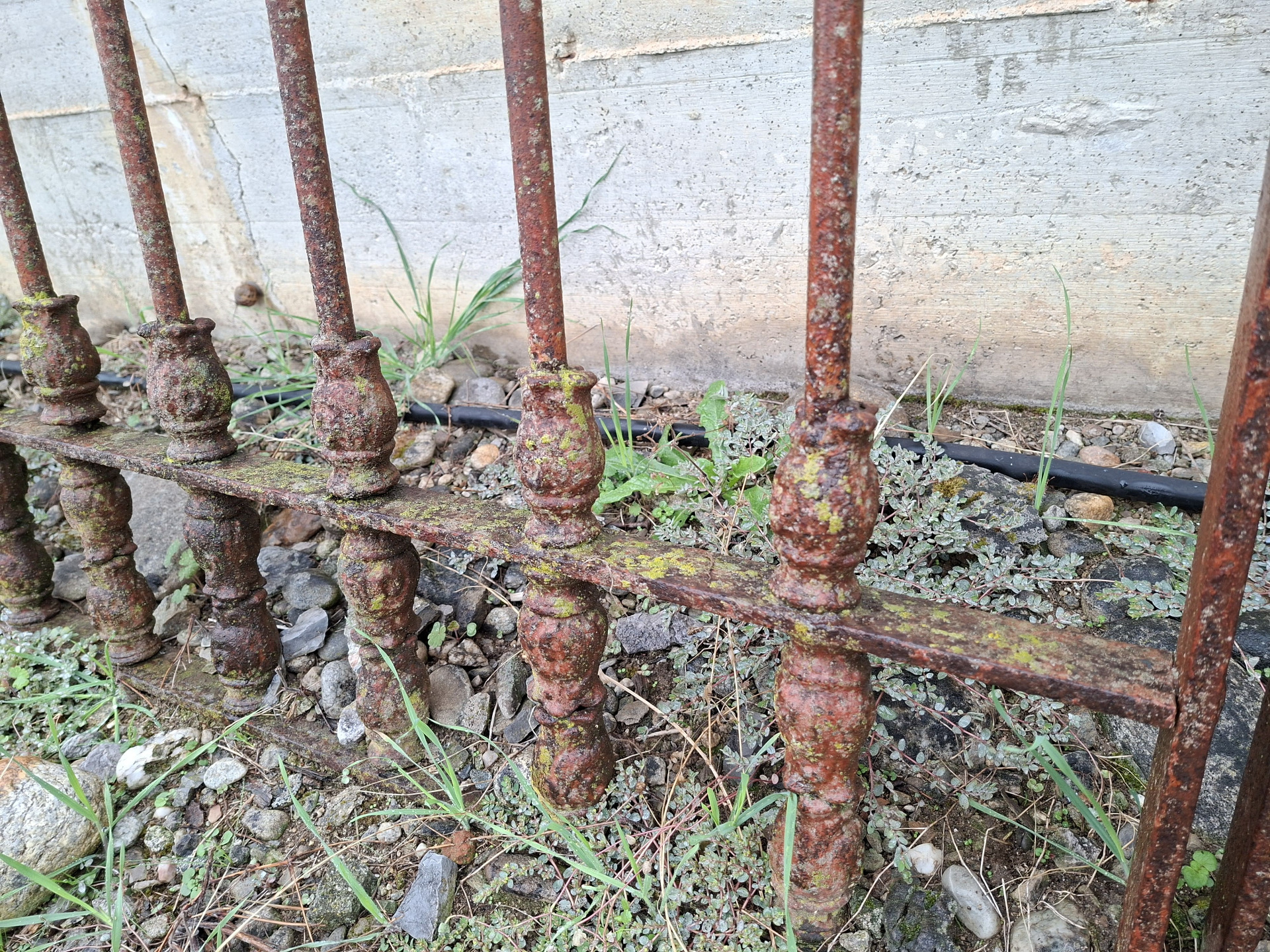 in ferro con inserti in ghisa. Dimensioni: Altezza215 cm - Larghezza 230 cm Spese di spedizione a carico cliente. Per maggiori informazioni: info@antichitadaziano.com