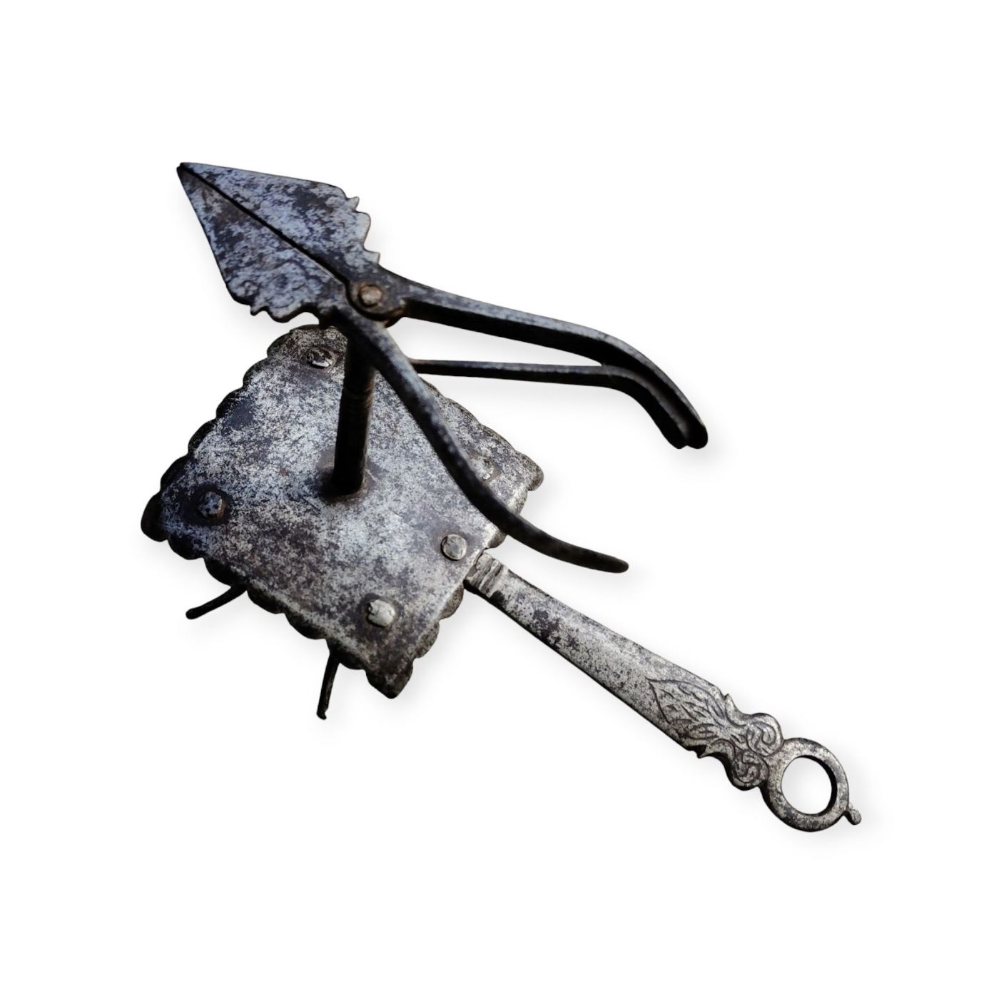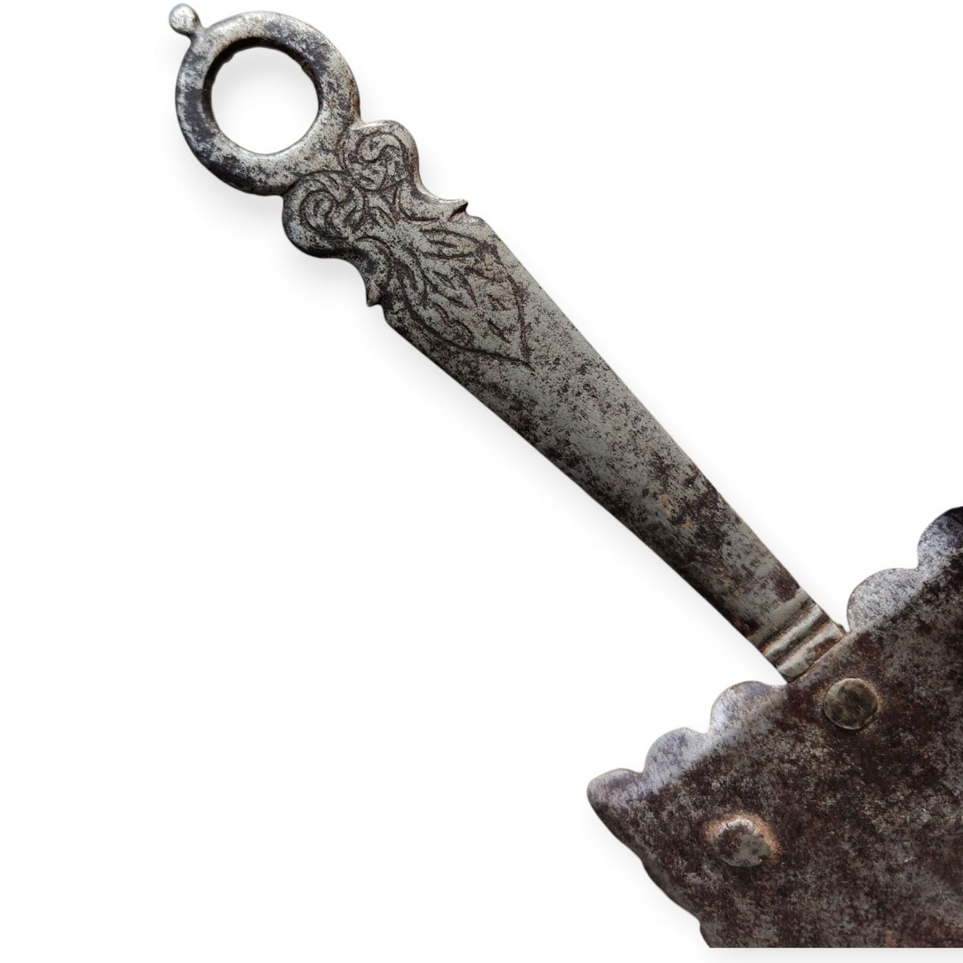 17th century wrought and engraved iron lamp