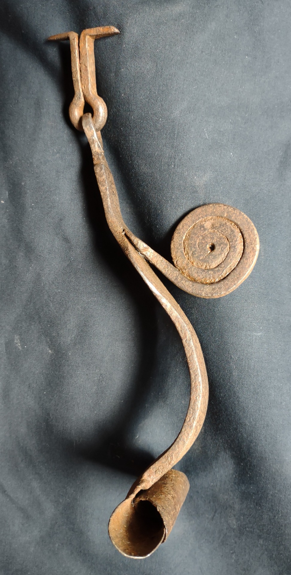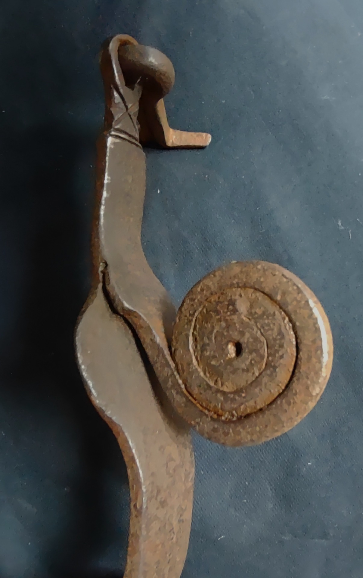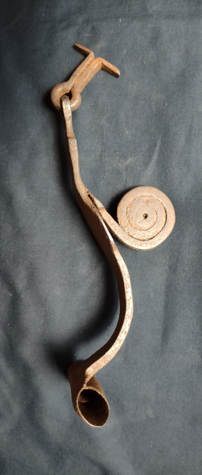 Large 16th-century wrought iron knocker or handle of an important piece of furniture. Northern Italy, 16th century. Length 23 cm, width and depth 10 cm.
