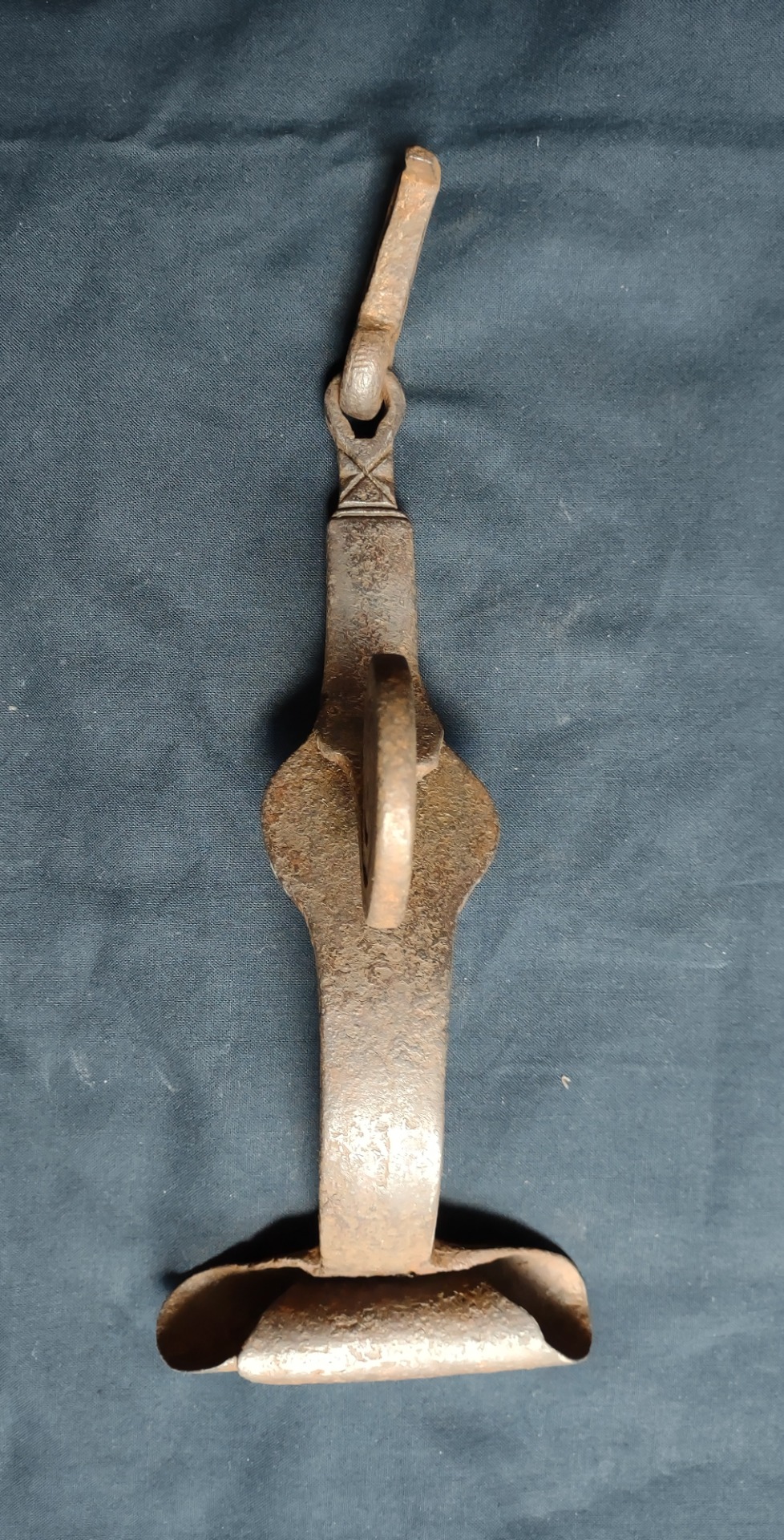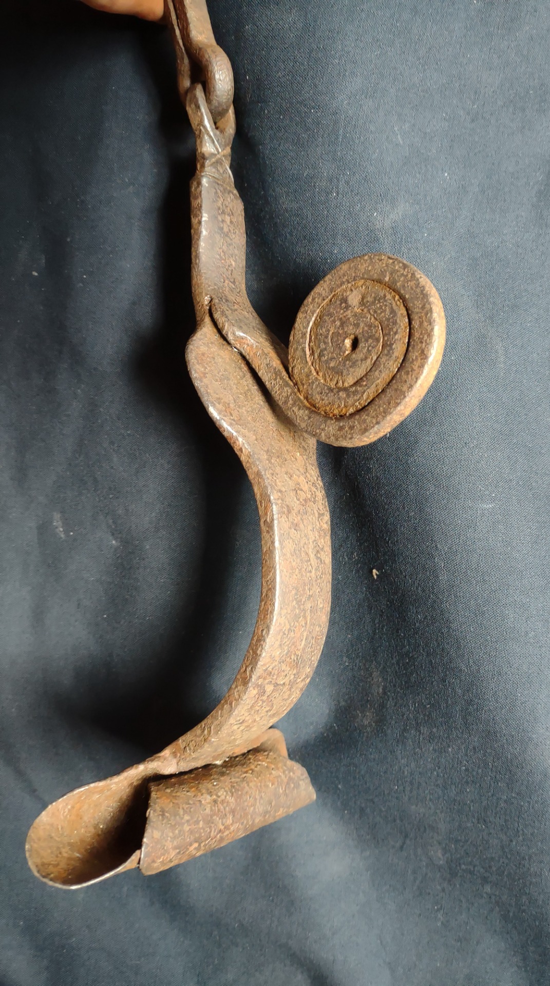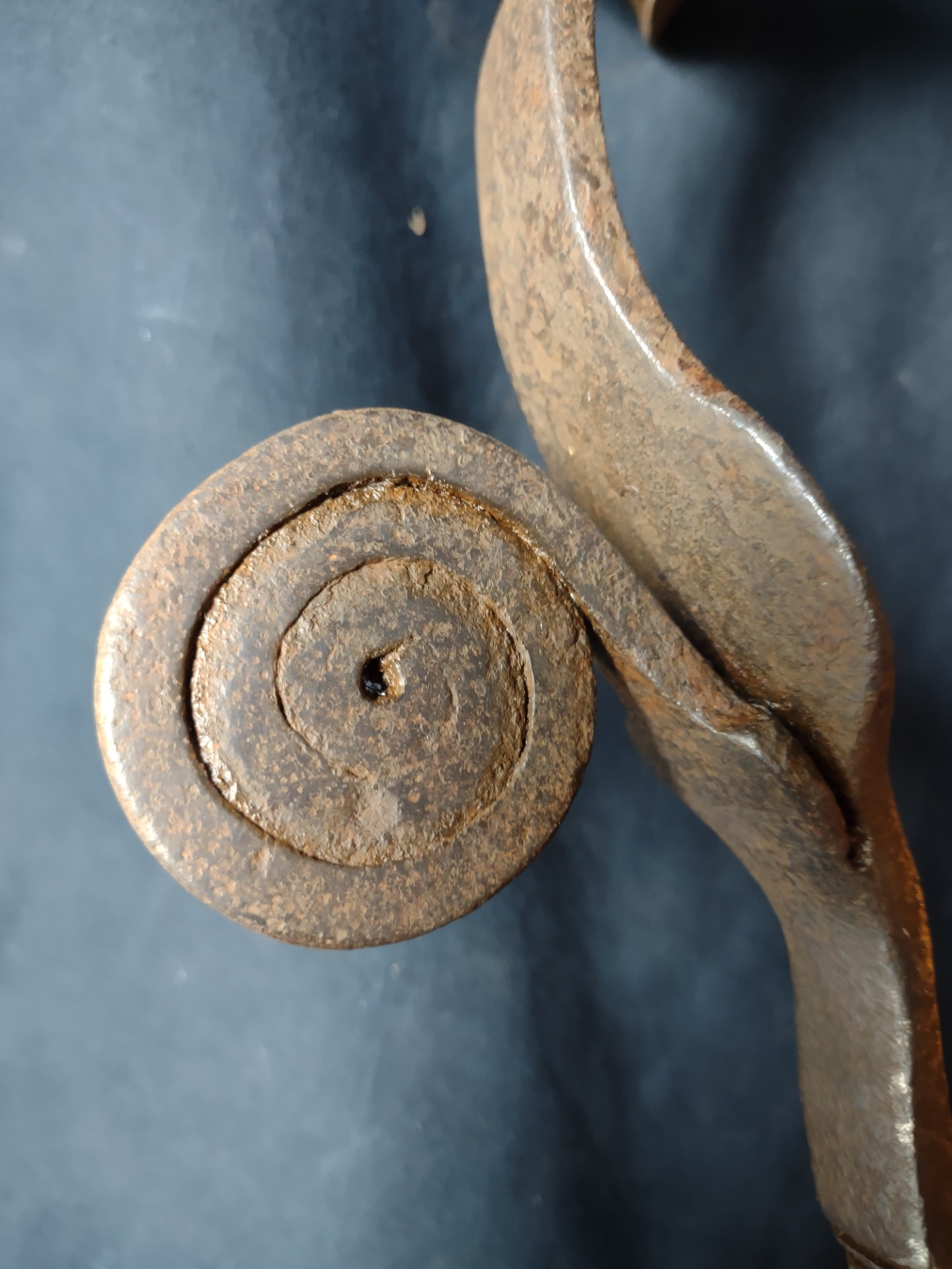 Large 16th-century wrought iron knocker or handle of an important piece of furniture. Northern Italy, 16th century. Length 23 cm, width and depth 10 cm.