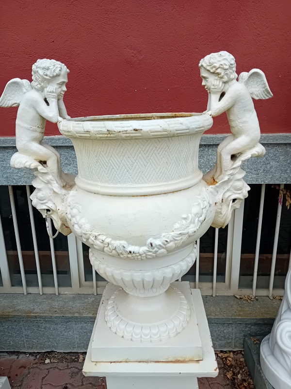 Dimensions: Height including putti and pedestal 155 cm - Height of vase only 94 cm - Vase compartment opening diameter 41 cm