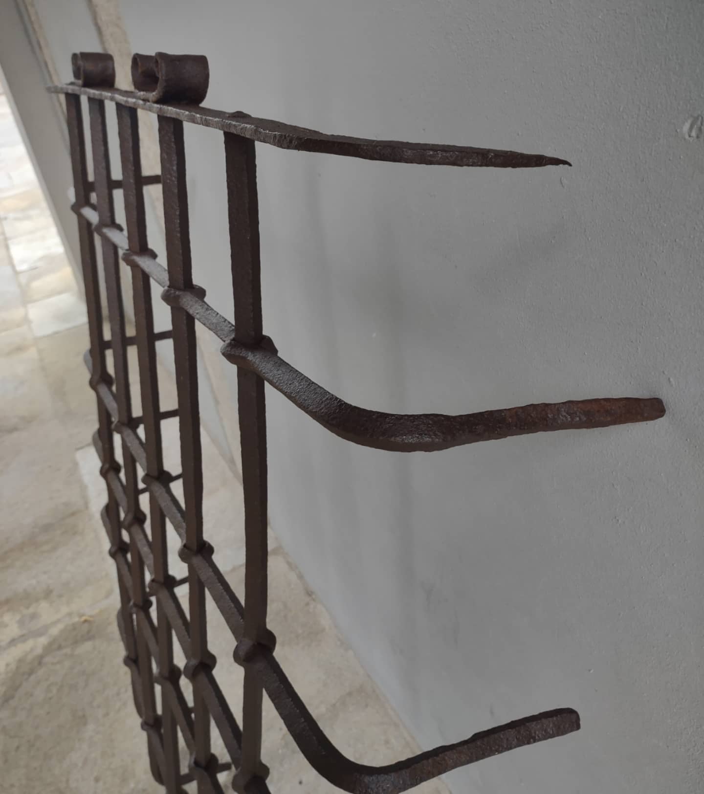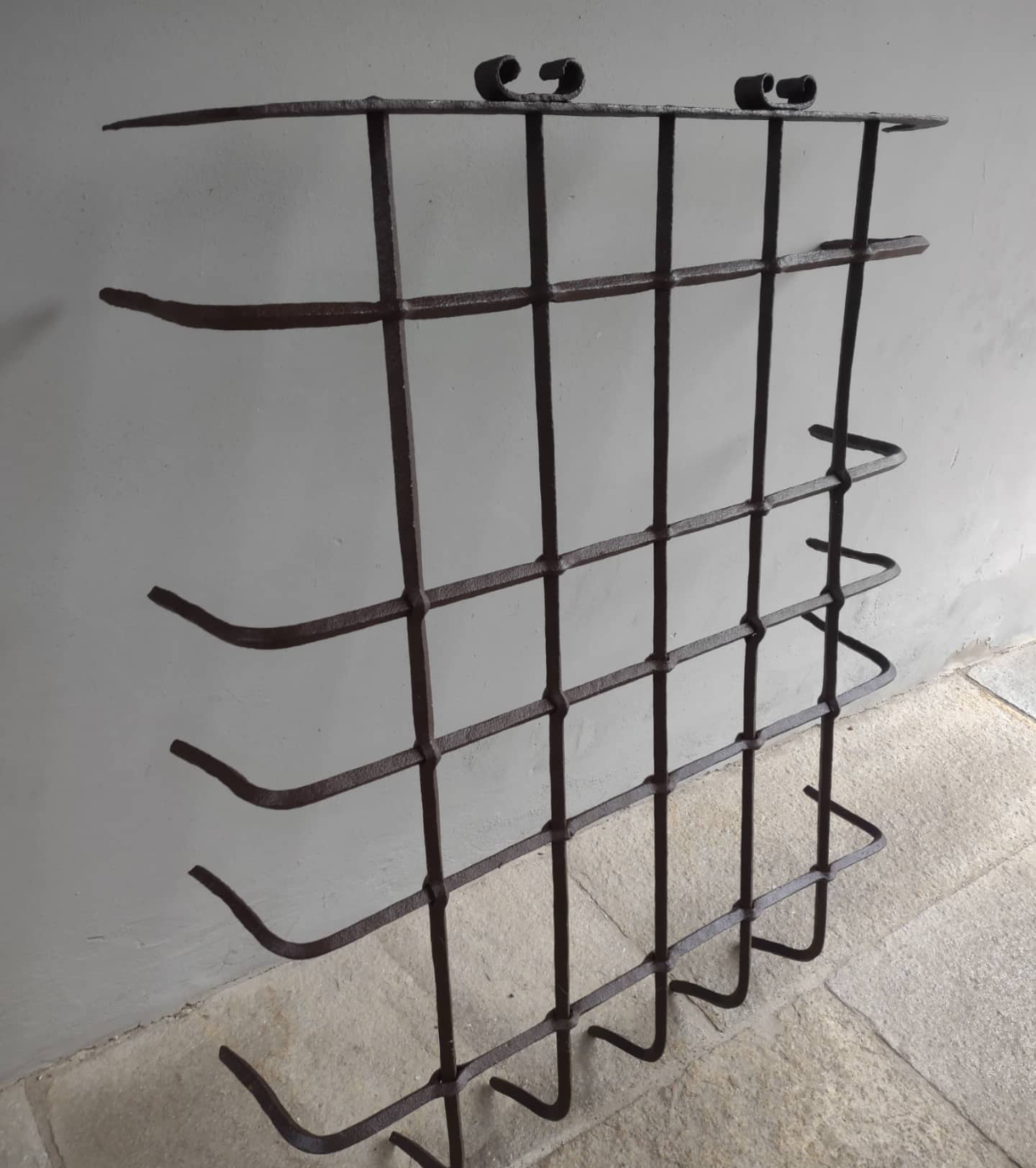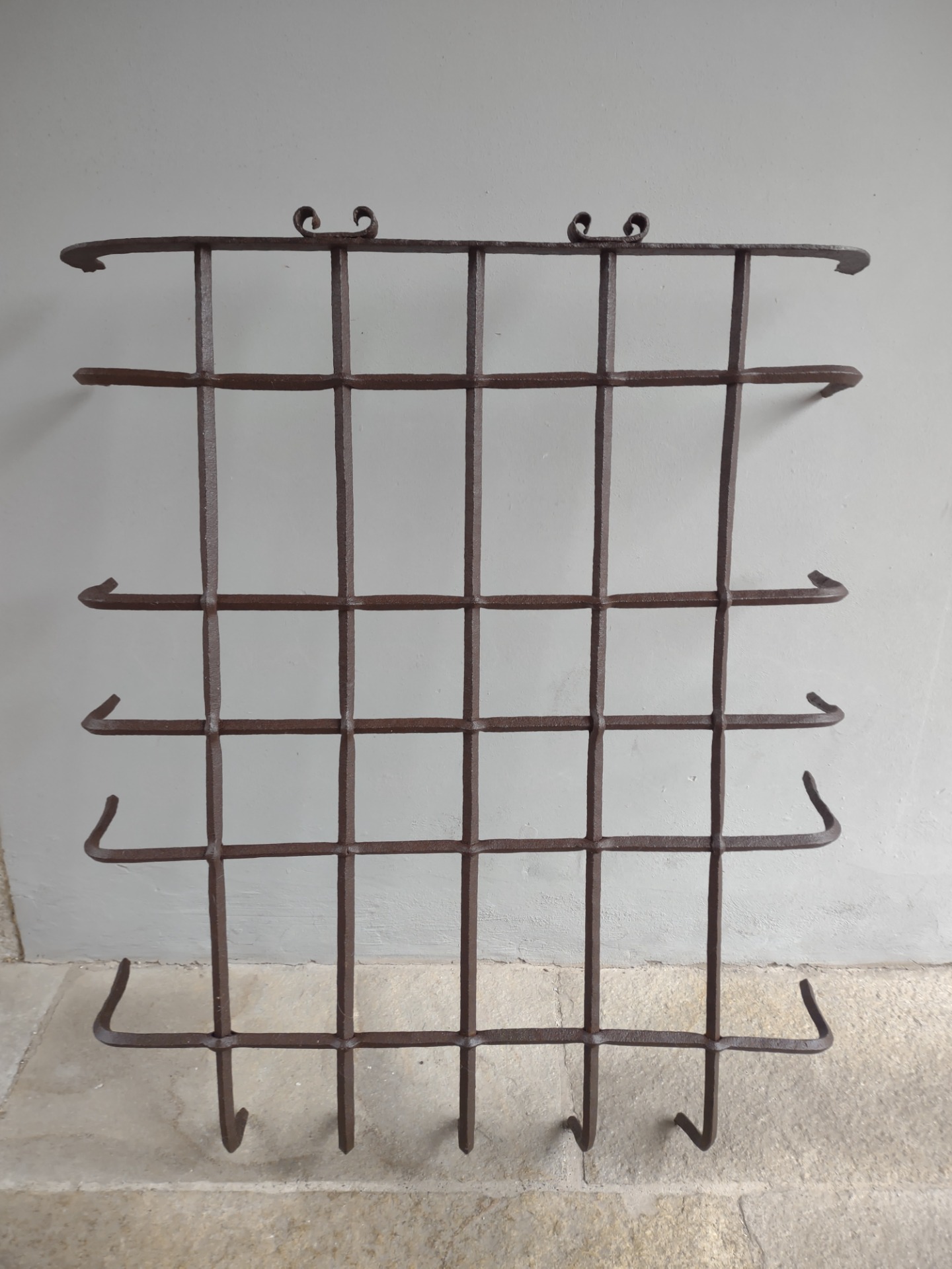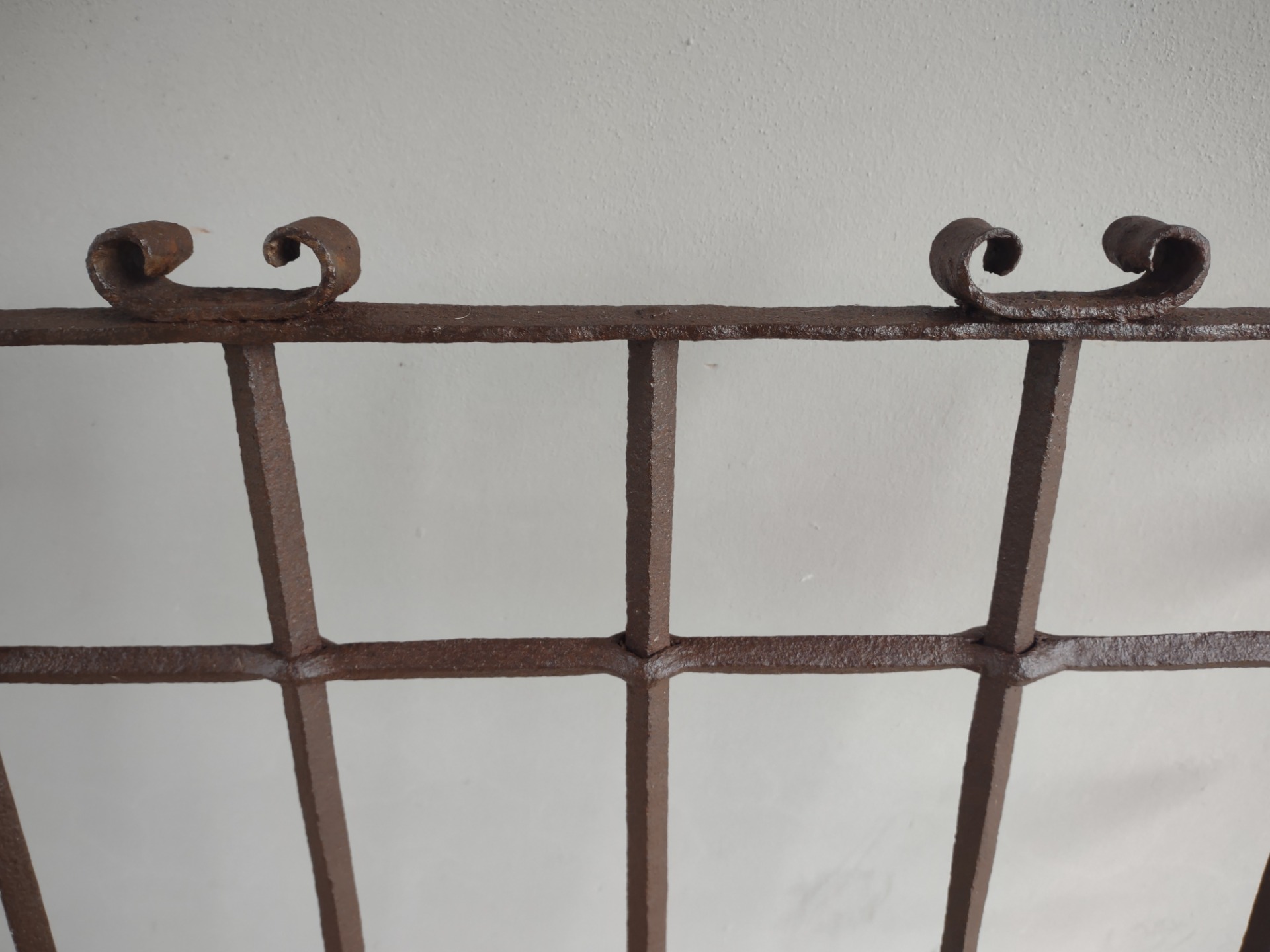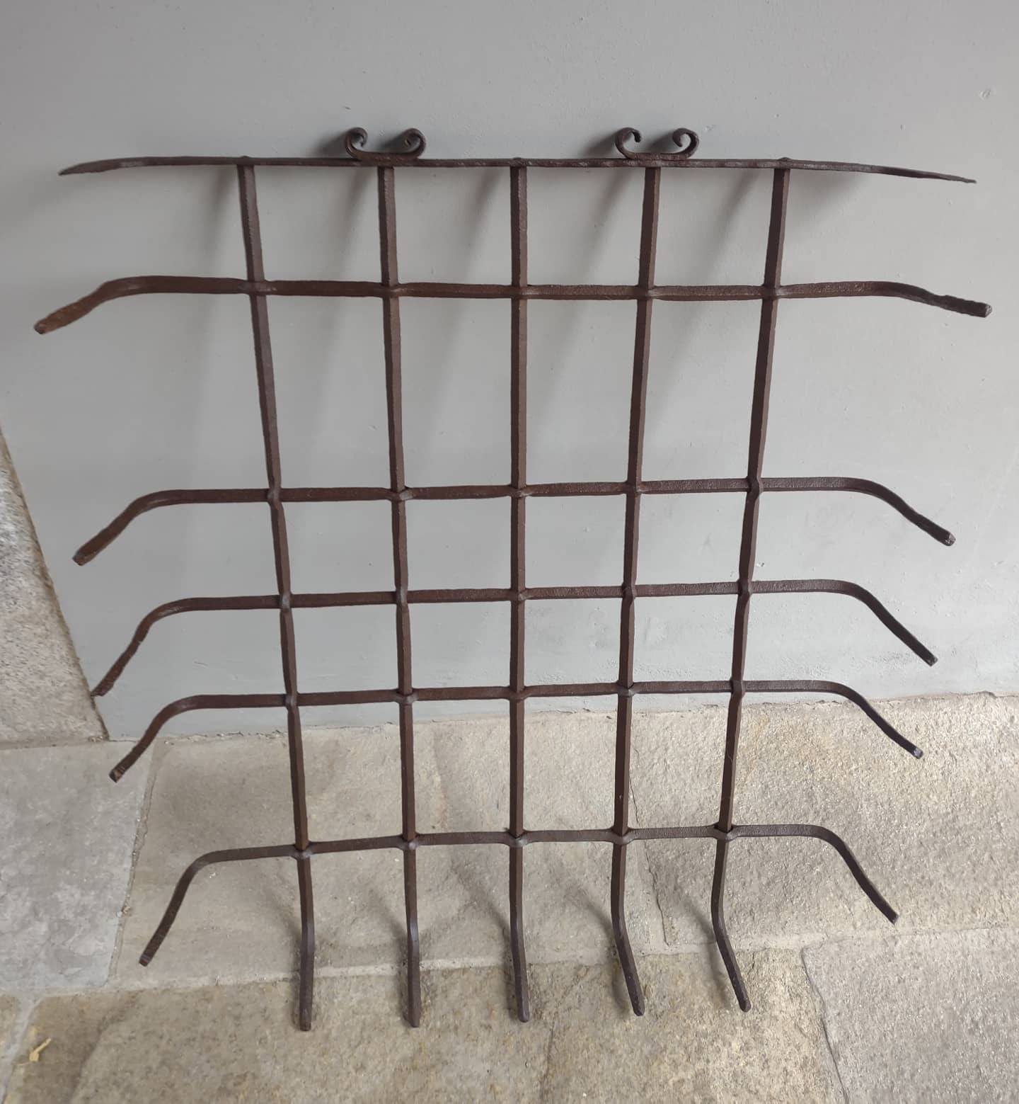 Beautiful Piedmontese wrought iron grate, very sturdy (weight 18 kg). Dimensions: h 114 w 94 d 14