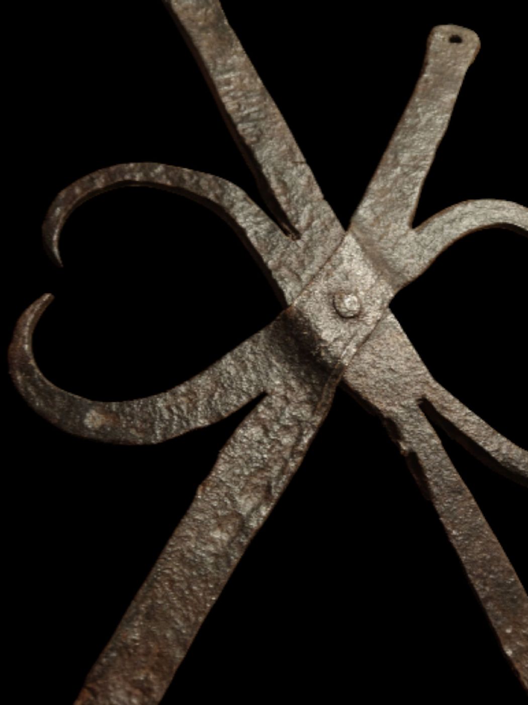 Unusual Lombard ironwork in wrought and boiled iron. Dimensions 40*24. Period 15th-16th century.