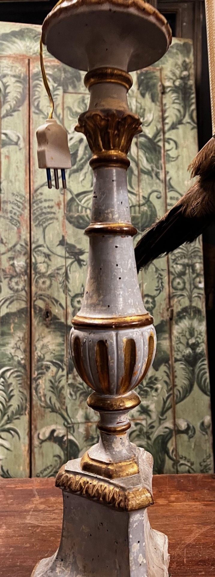 LAMP240 - Lacquered wooden candlesticks, 19th century, size cm W 20 x H 95 x D 20