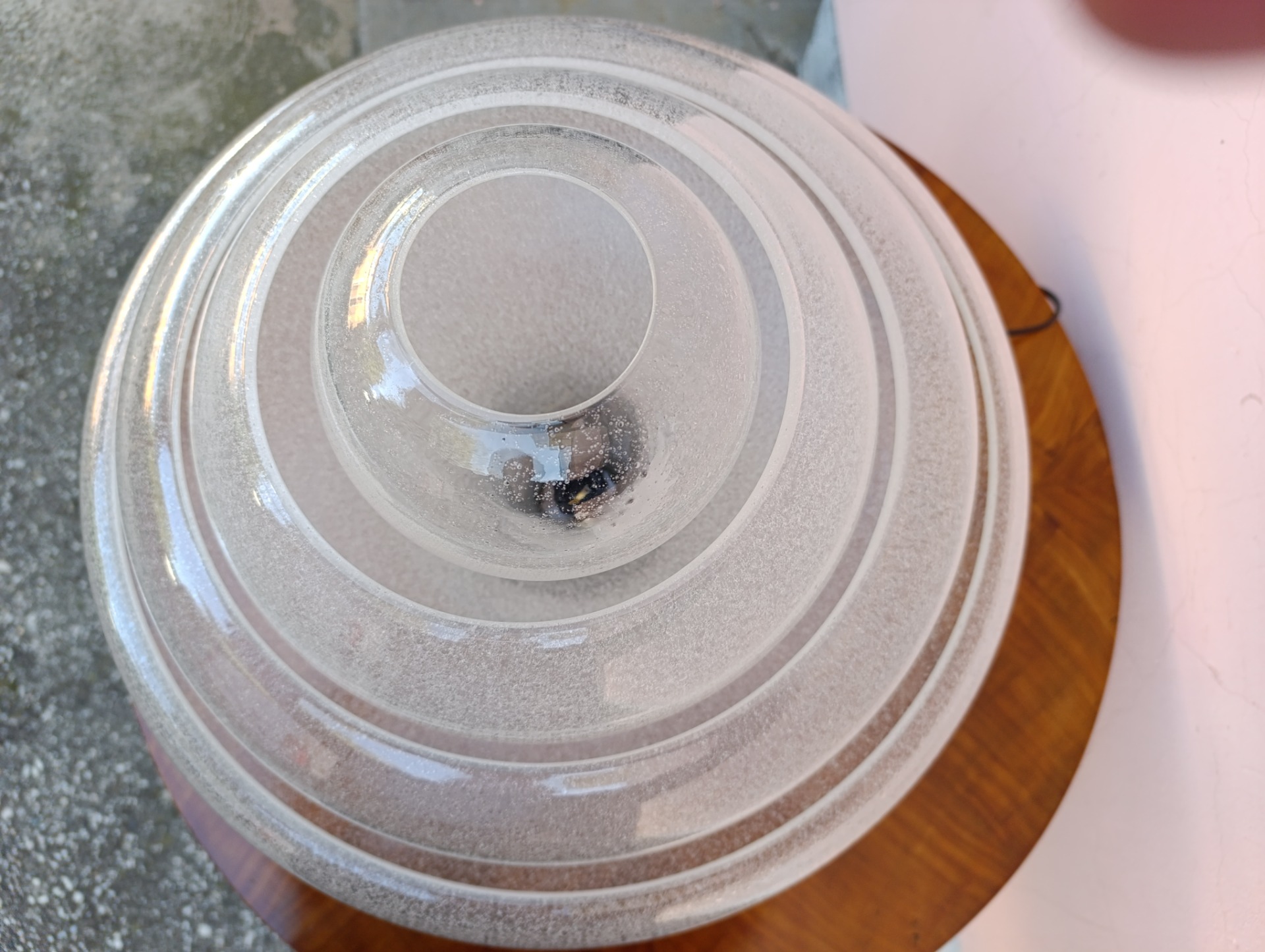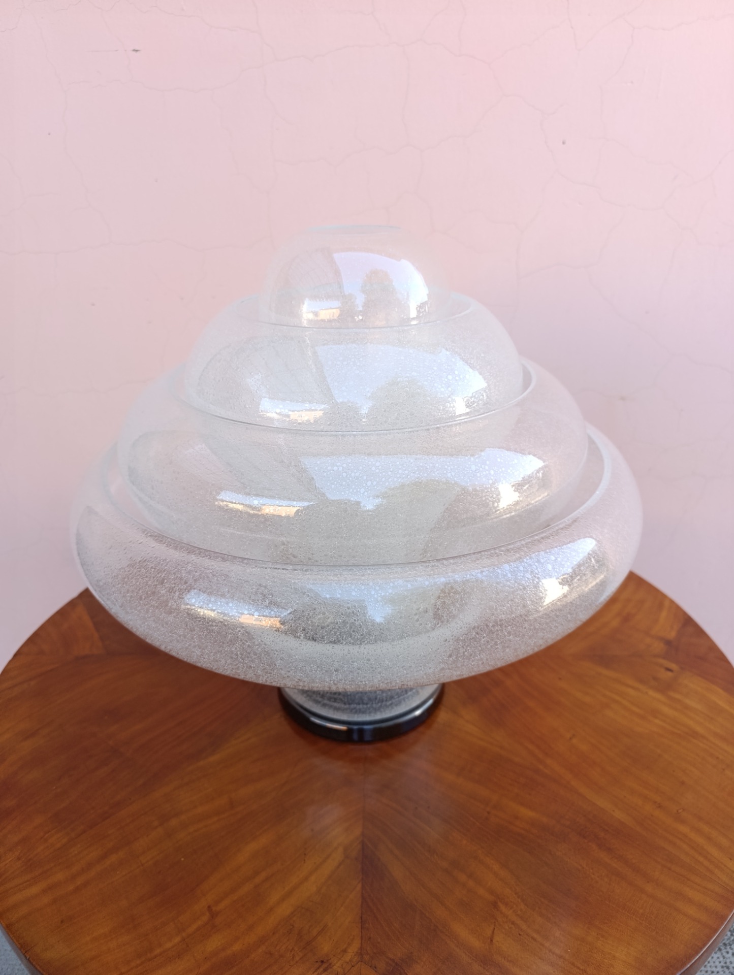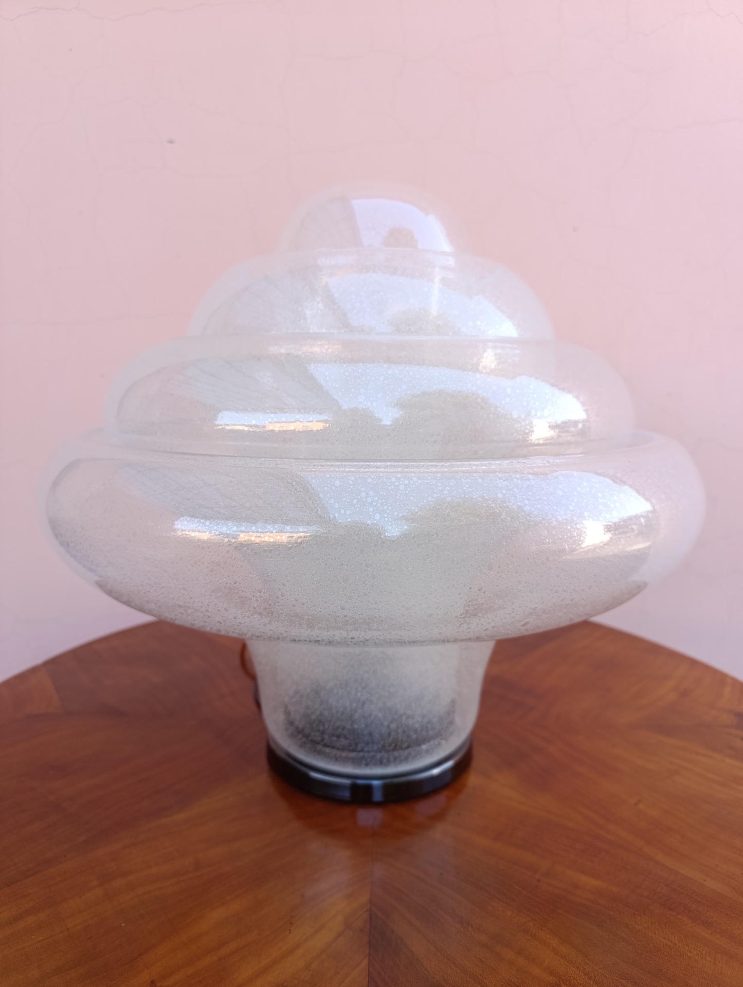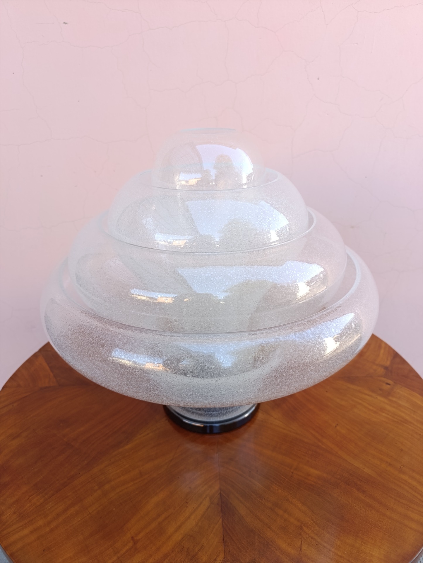 Lotus design table lamp in 'polegoso' glass. Carlo Nason for Mazzega. Excellent condition. Dimensions: H 44, L 47, D 47. We are at your disposal for photos or questions.