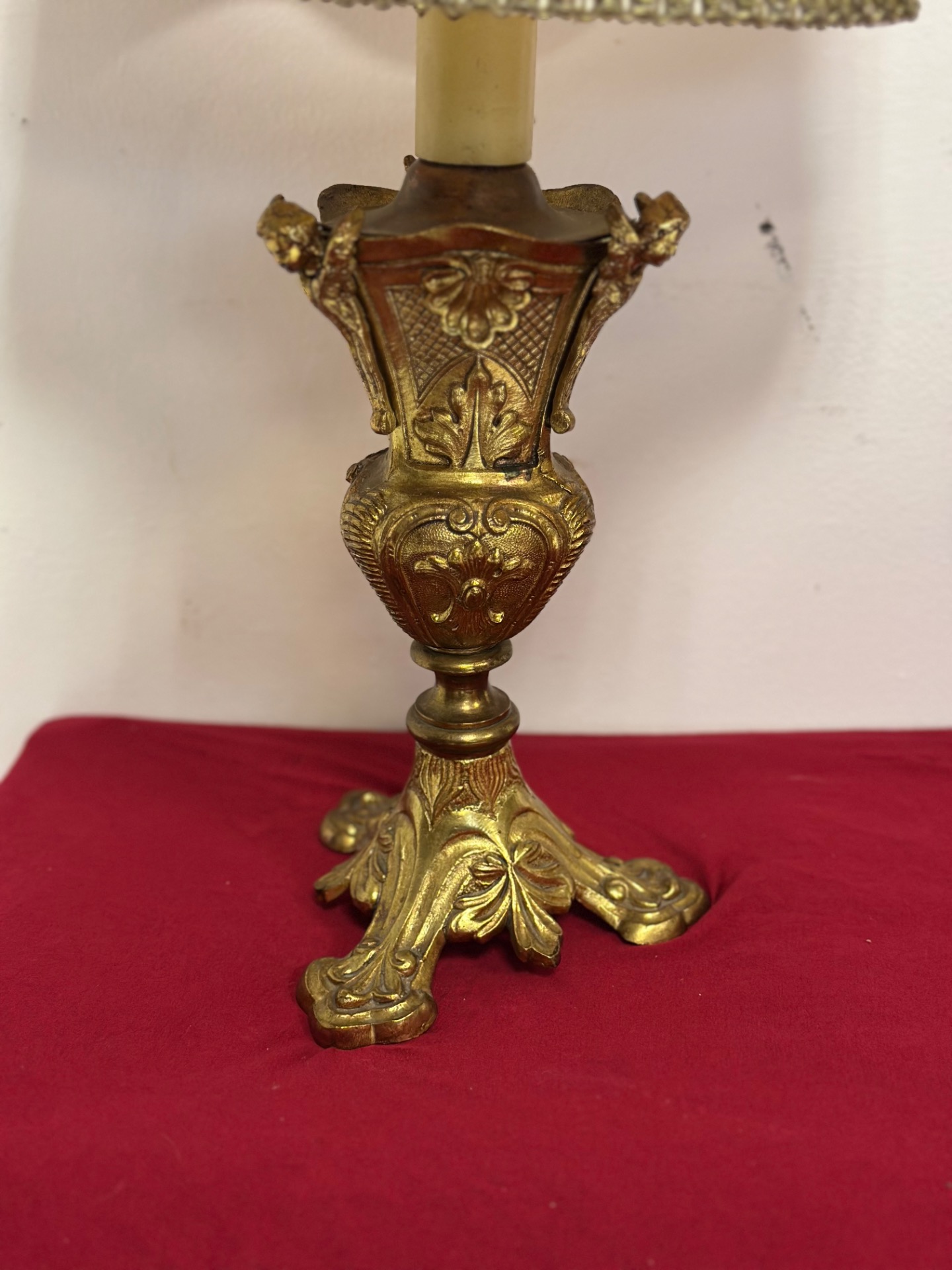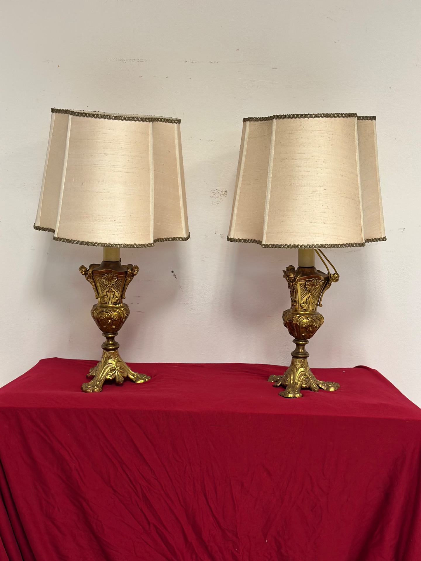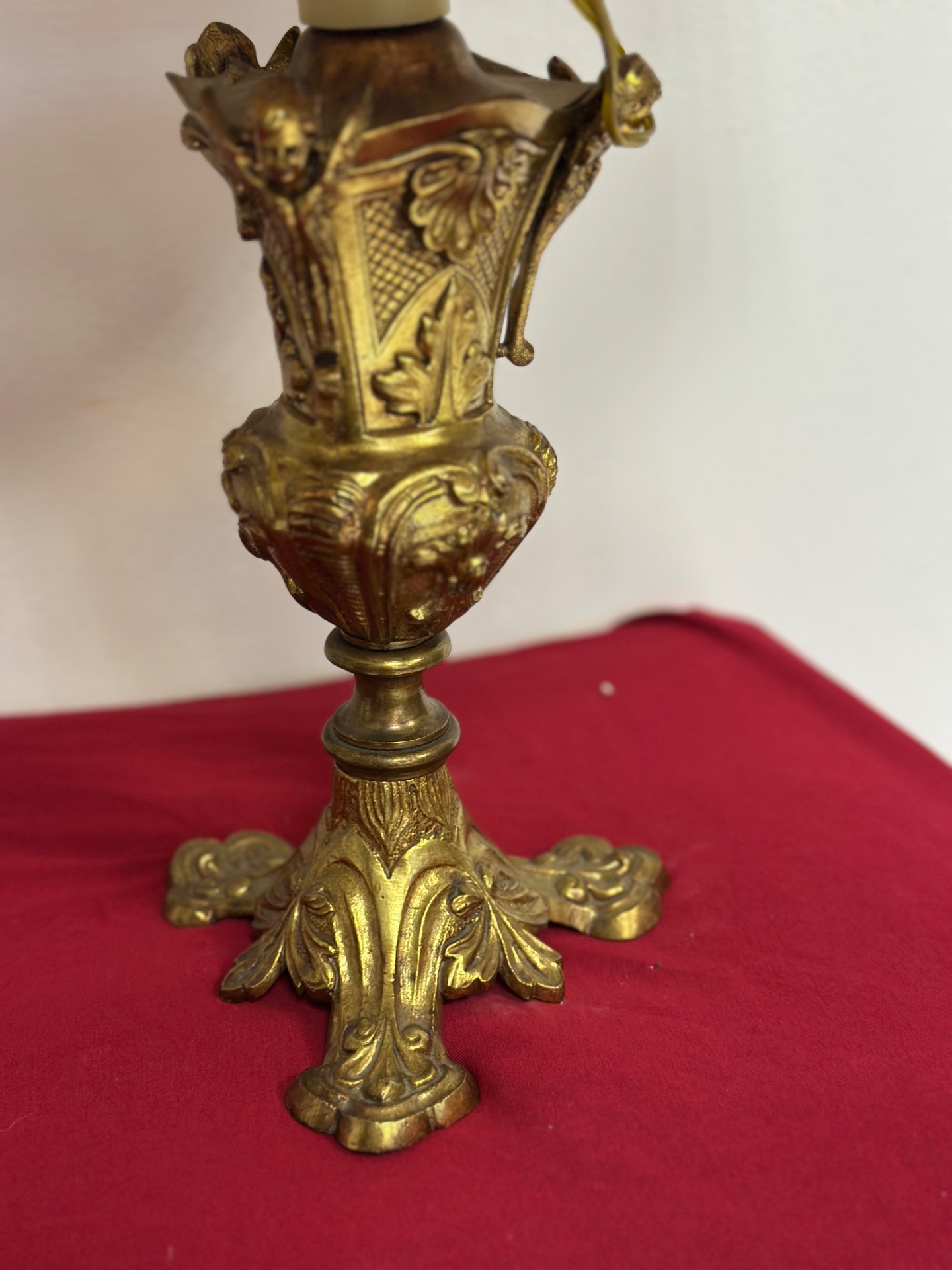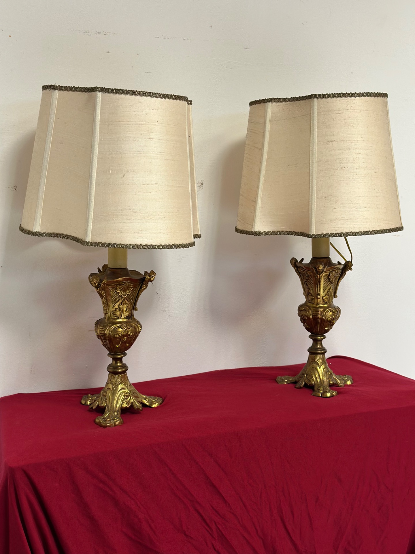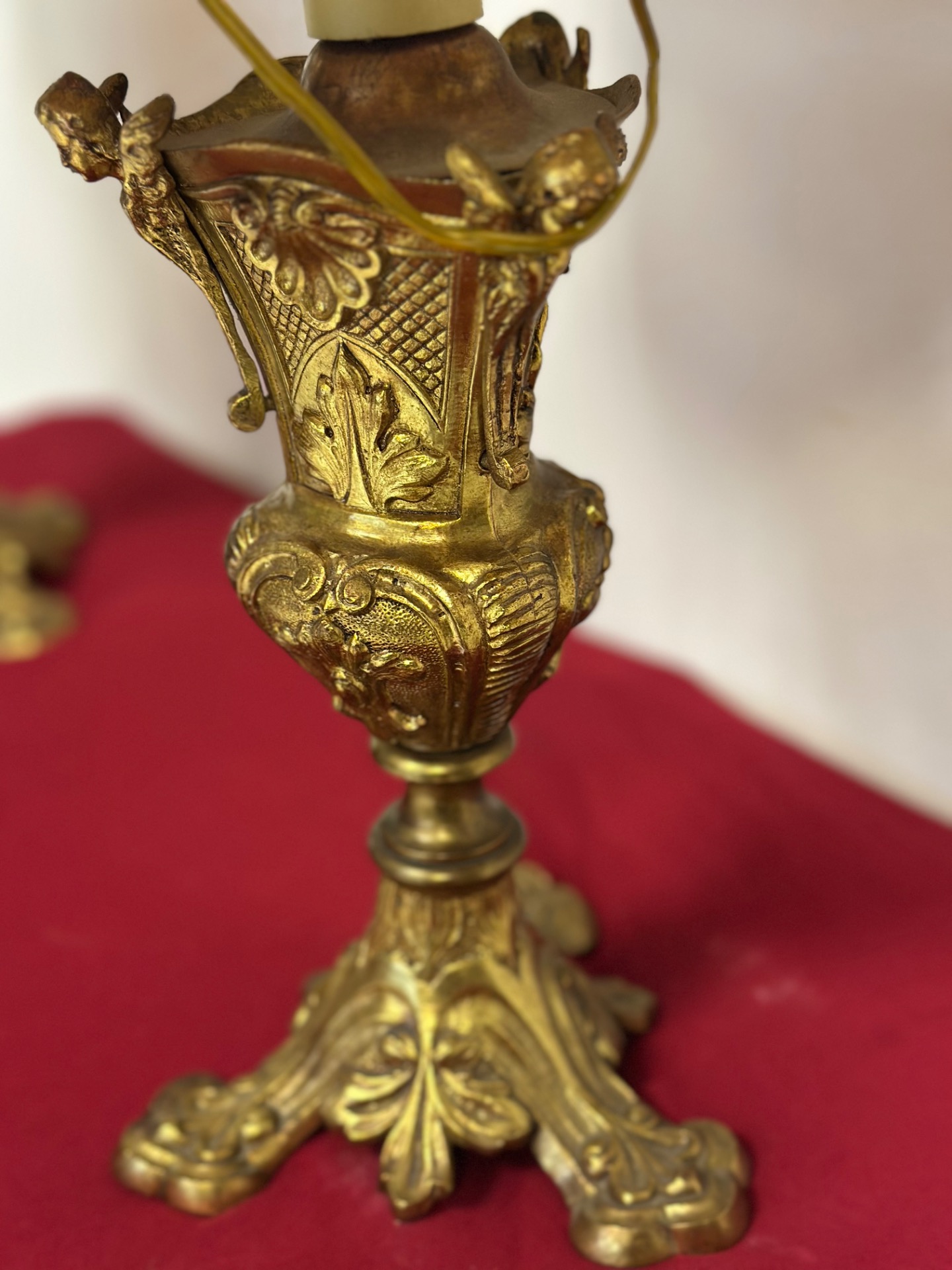 Pair of Lombard bedside lamps from the early 1900s in gilded bronze with raised decorations with scroll motifs. Functional.