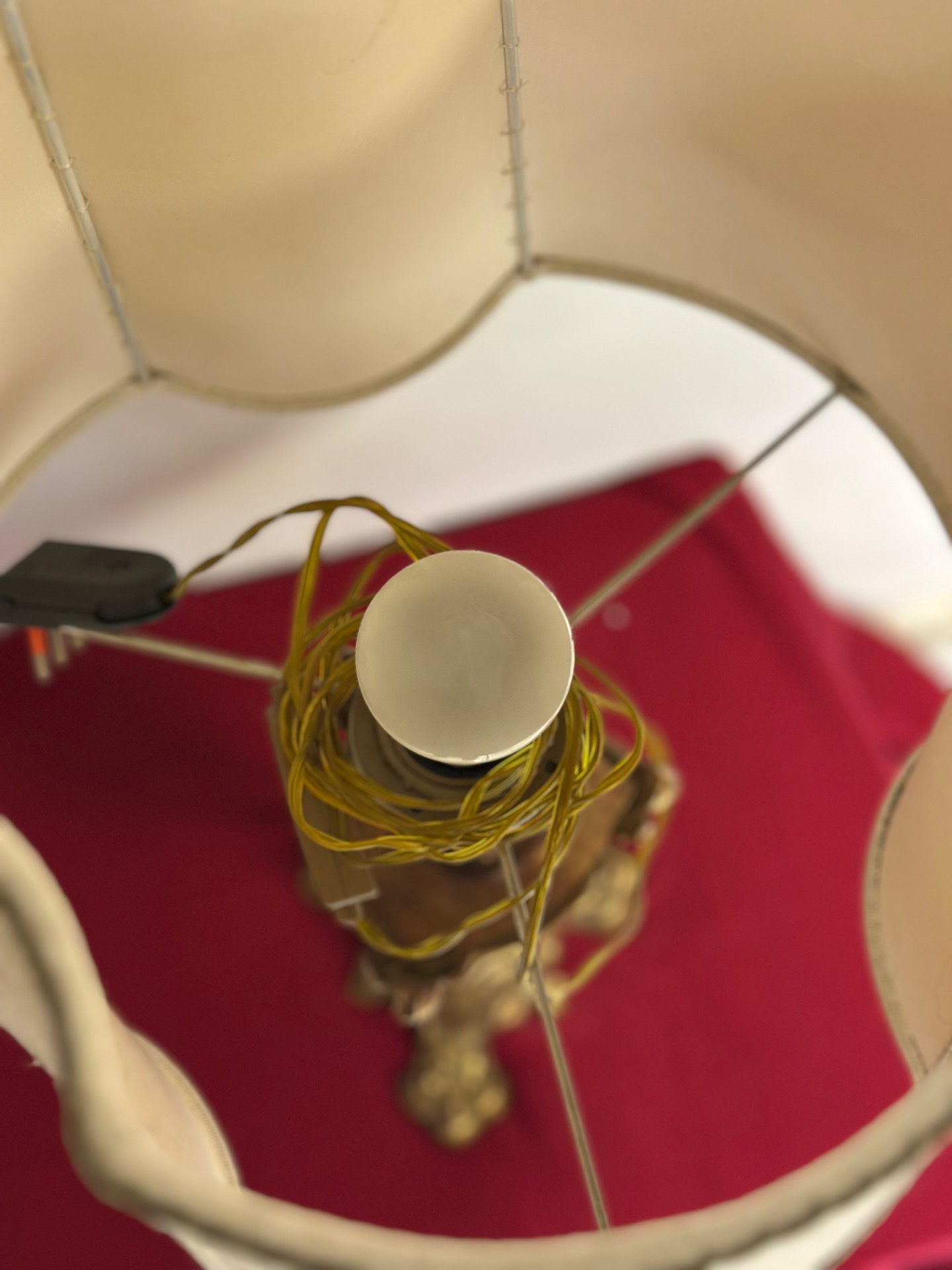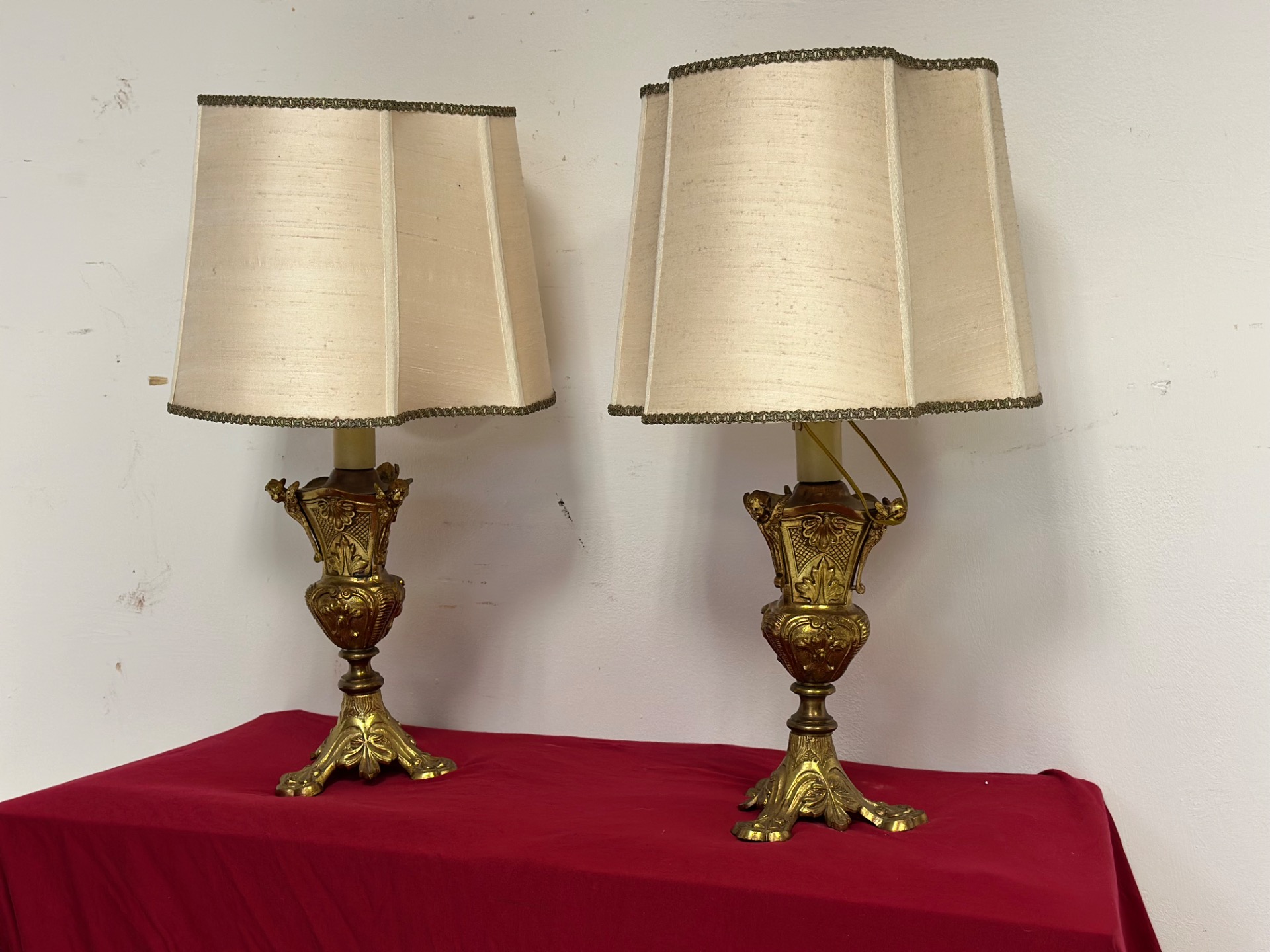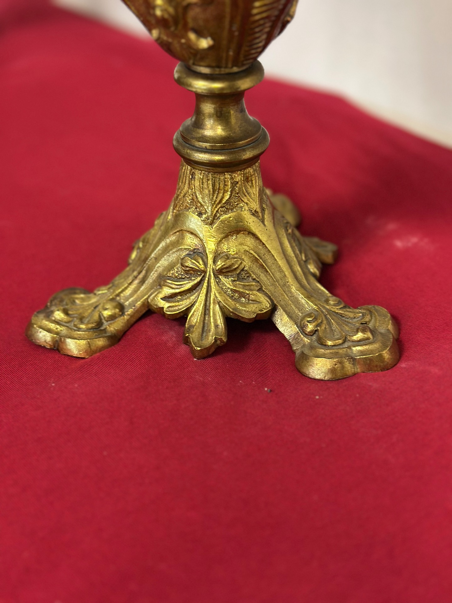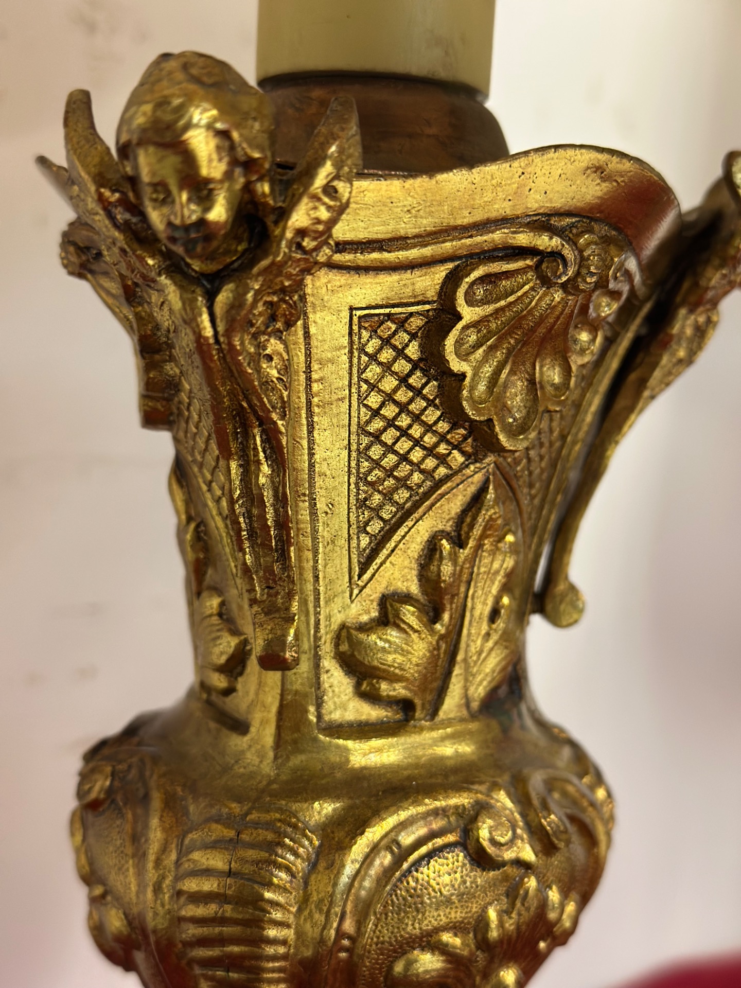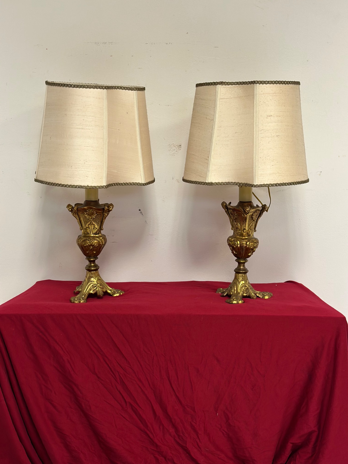 Pair of Lombard bedside lamps from the early 1900s in gilded bronze with raised decorations with scroll motifs. Functional.