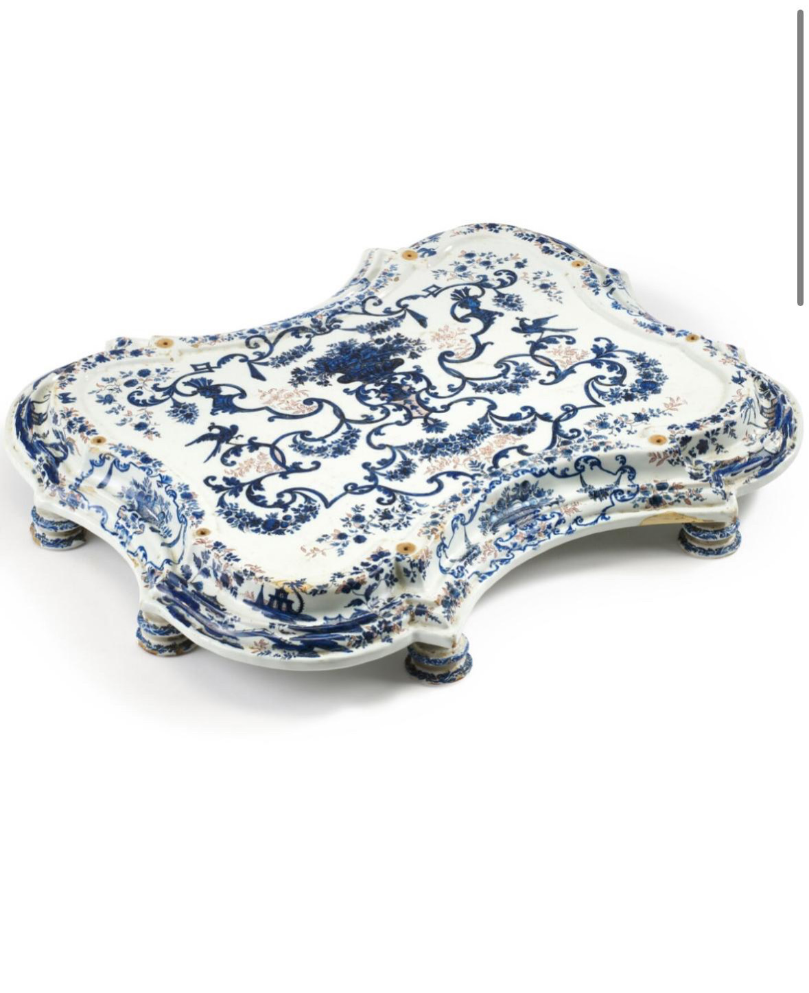 Raro centrotavola in maiolica , decoro con pagode , manifattura Pasquale Antonibon , cm 64x 52 circa . XVIII secolo