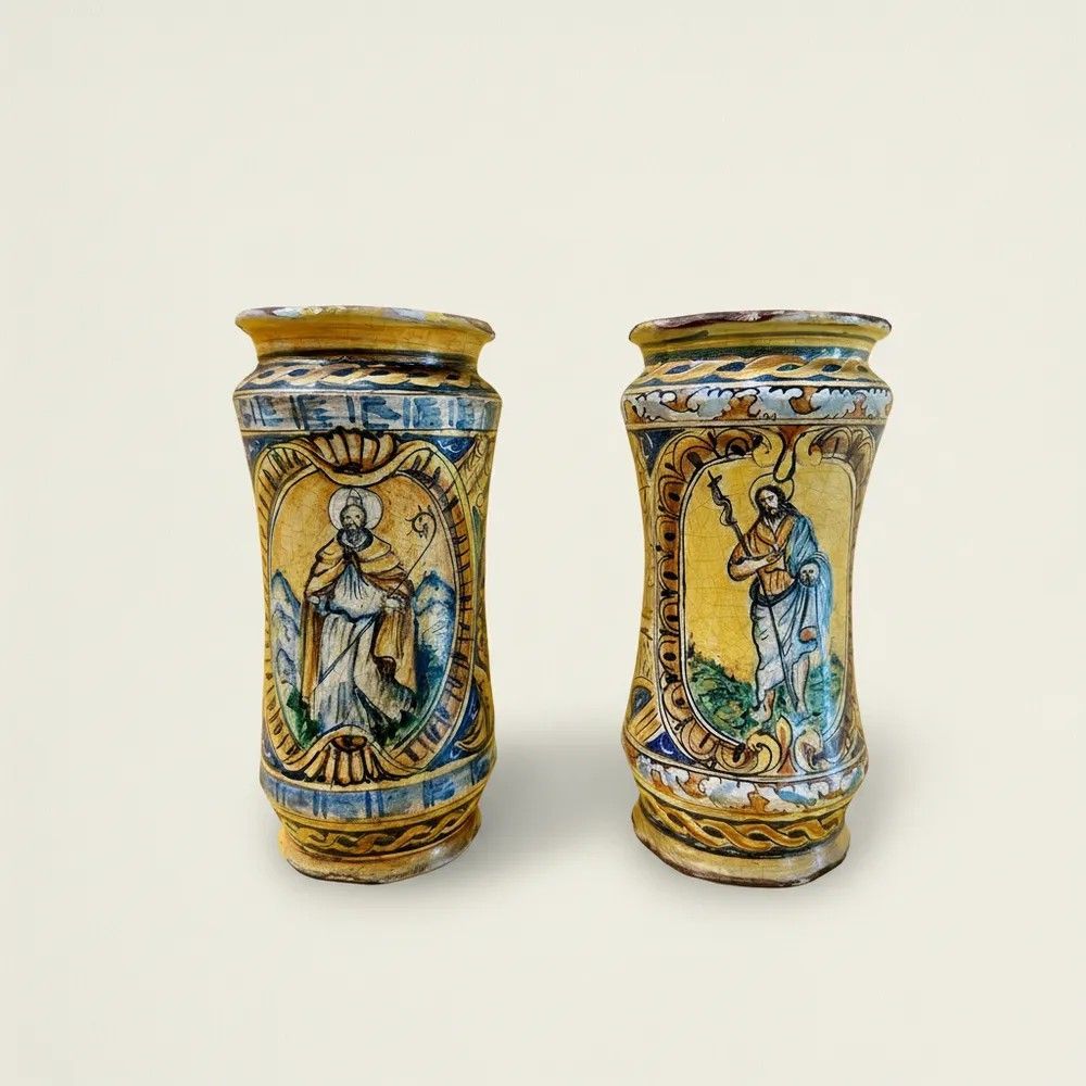 Coppia di Albarelli in Maiolica Siciliana XIX secolo