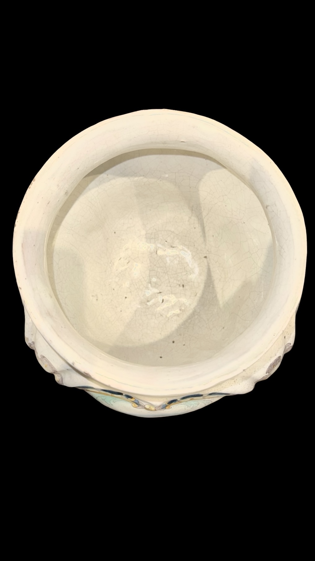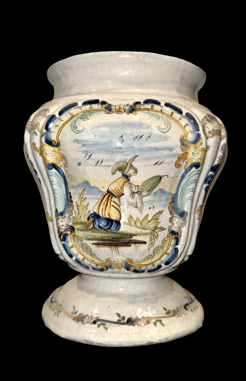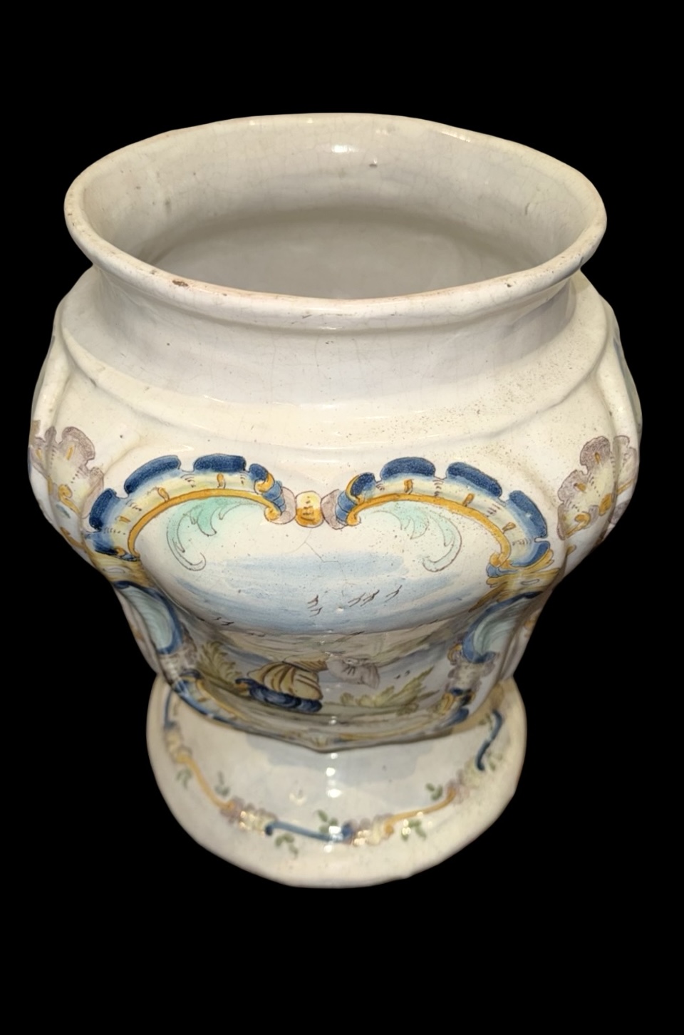 Majolica vase with rocaille medallion featuring an oriental figure. Angelo del Vecchio. Naples.
