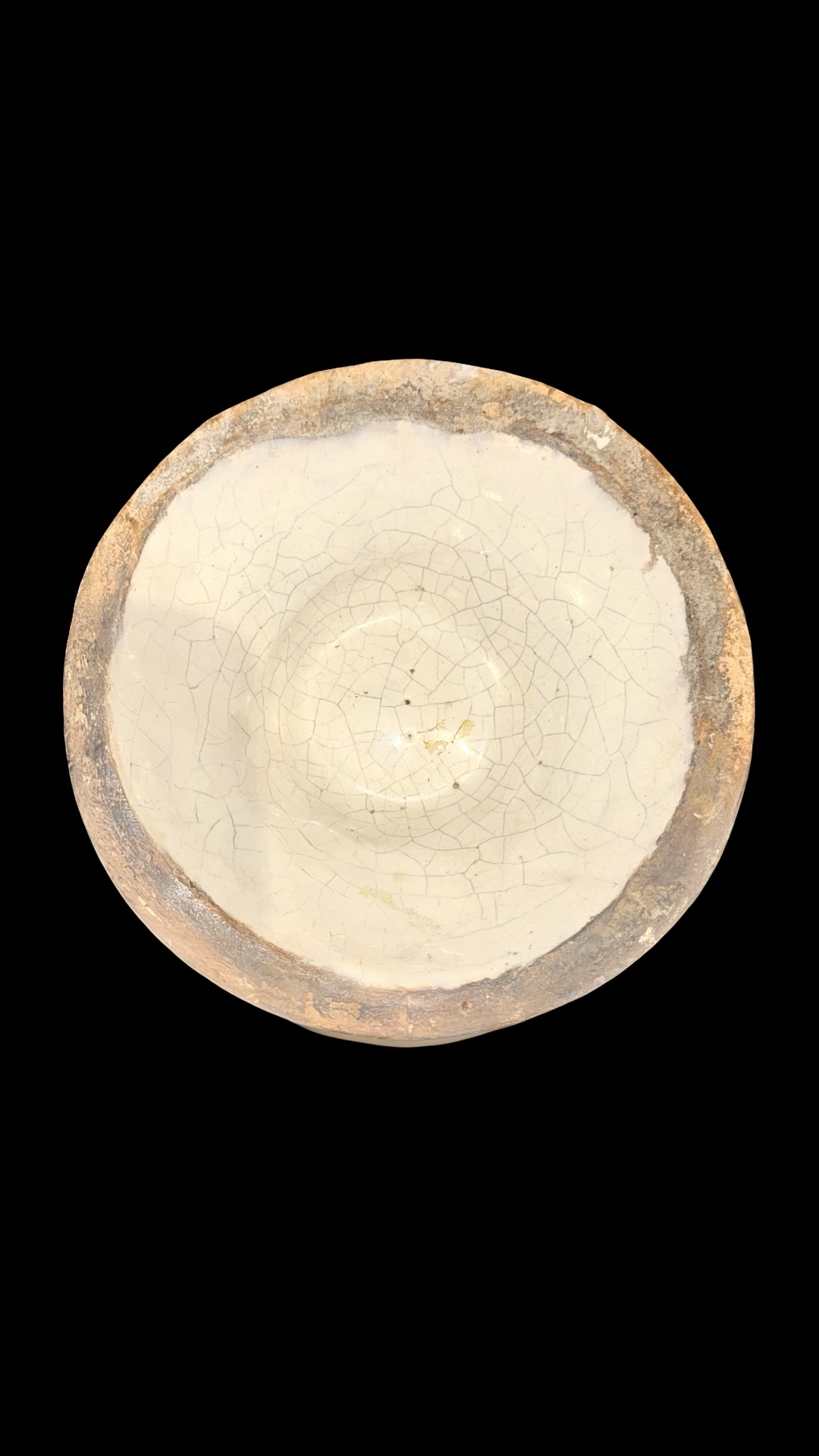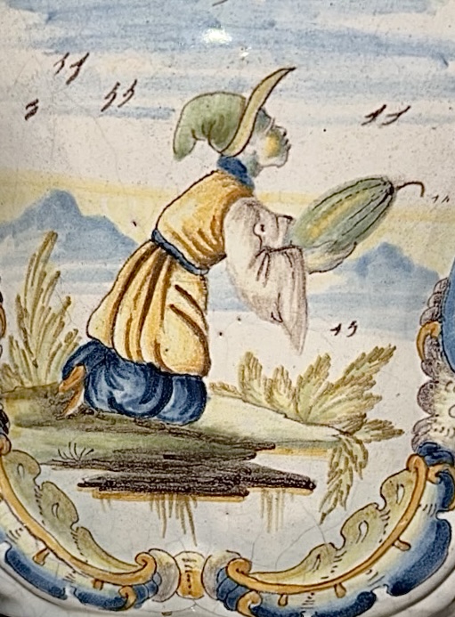 Majolica vase with a ribbed body on a wide base with an everted neck. On the front, a rocaille medallion with an oriental figure holding a watermelon. Angelo del Vecchio. Naples. Cm 25x21. Base: cm 16.