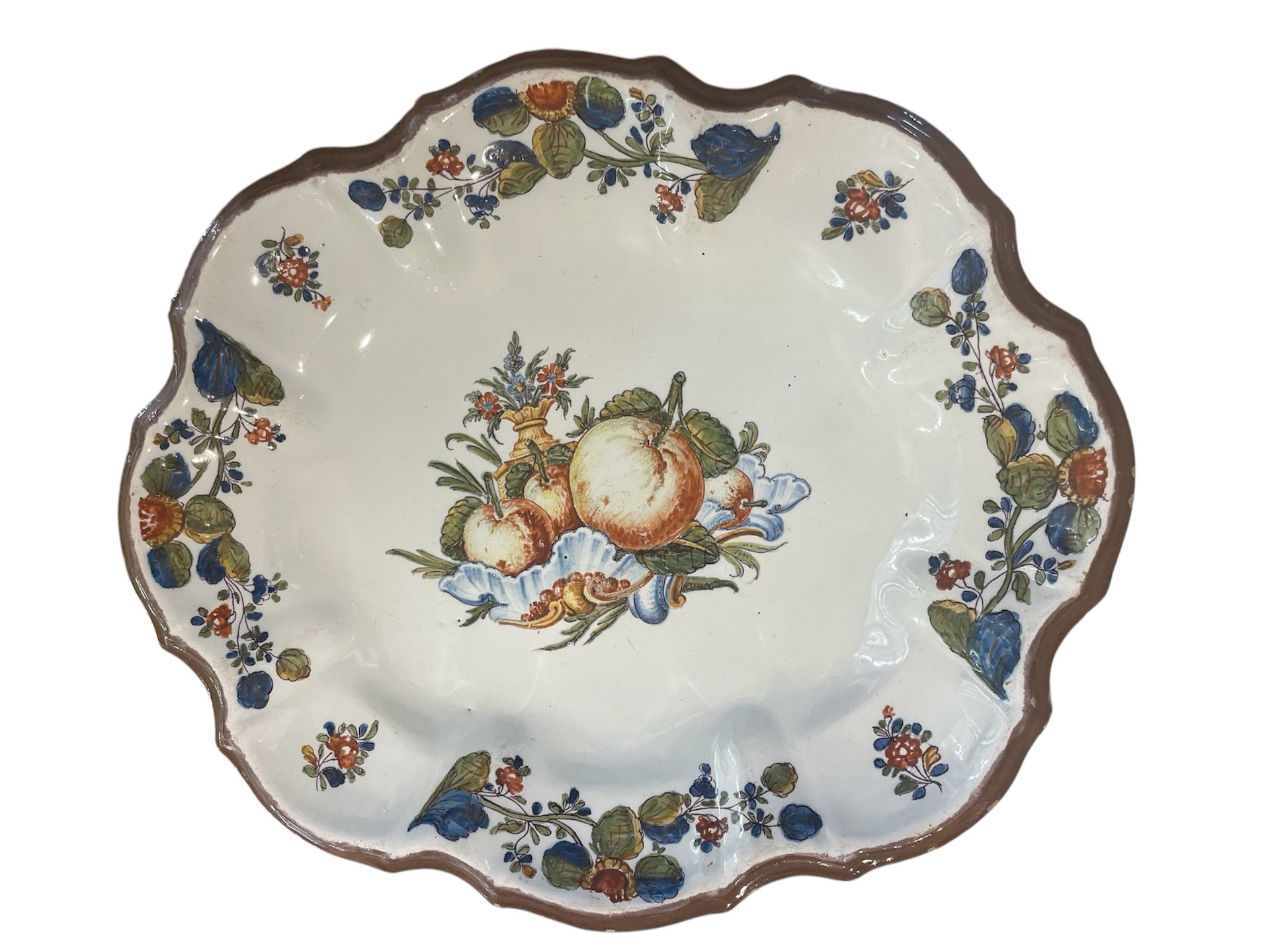 Vassoio in maiolica sagomato, manifattura Pasquale Antonibon , decoro alla frutta barocca . Larghezza cm 34 , XVIII secolo