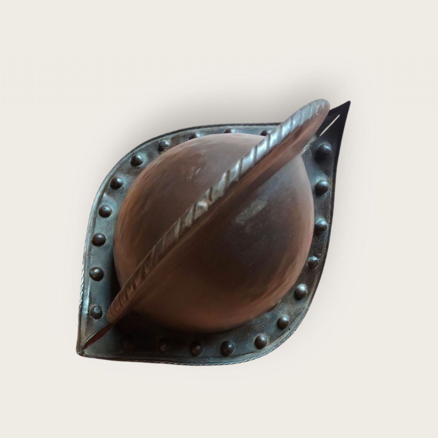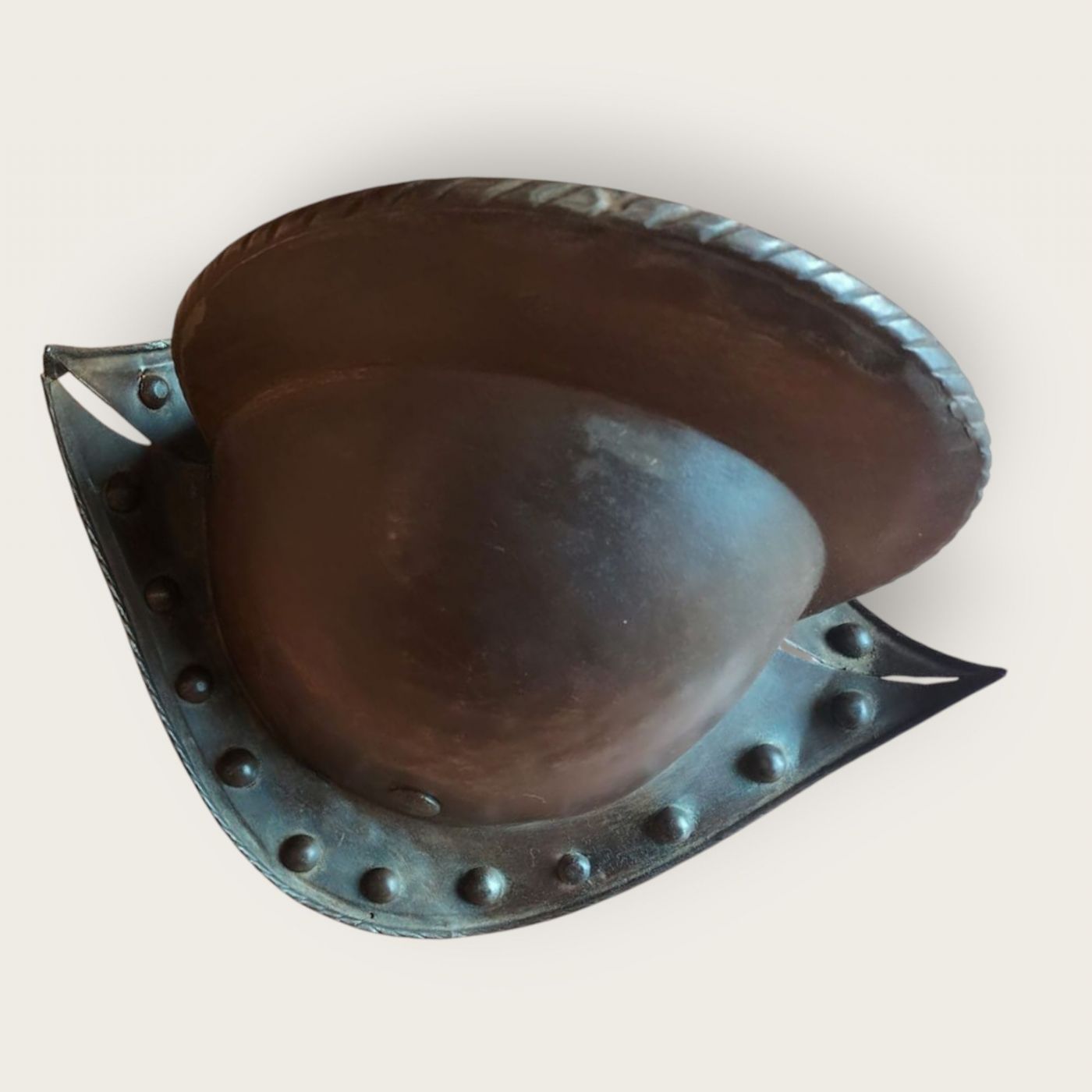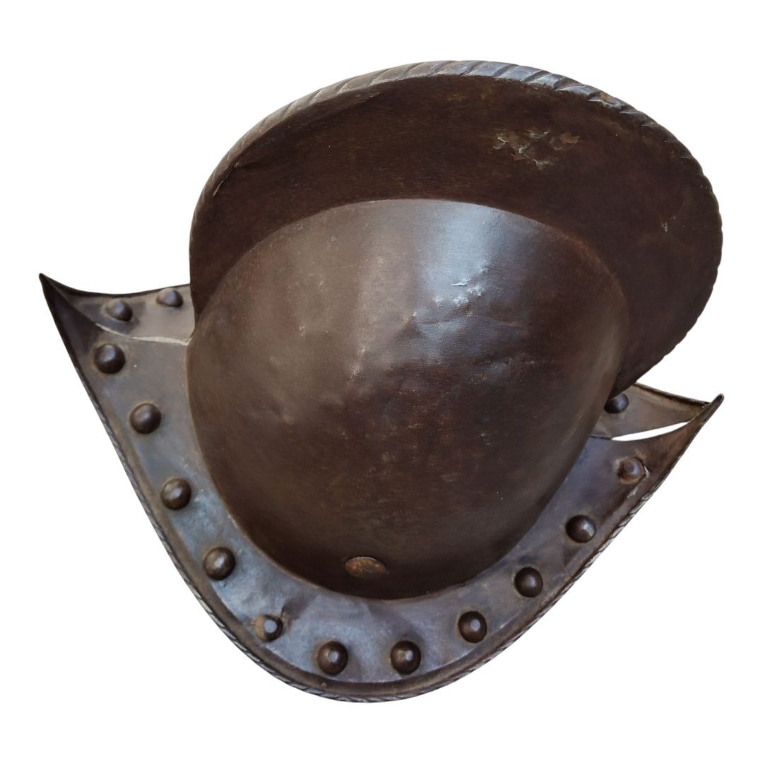 Interesting Spanish Morion with high crest for castle use (lighter than those for battle, intended for use within the walls) from the private collection of the Peruvian General and President Miguel Iglesias (1830-1909).The helmet has two visible engravings near the tips, probably made to display the helmet.