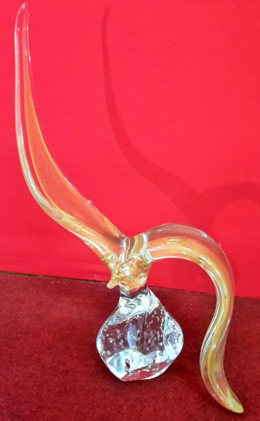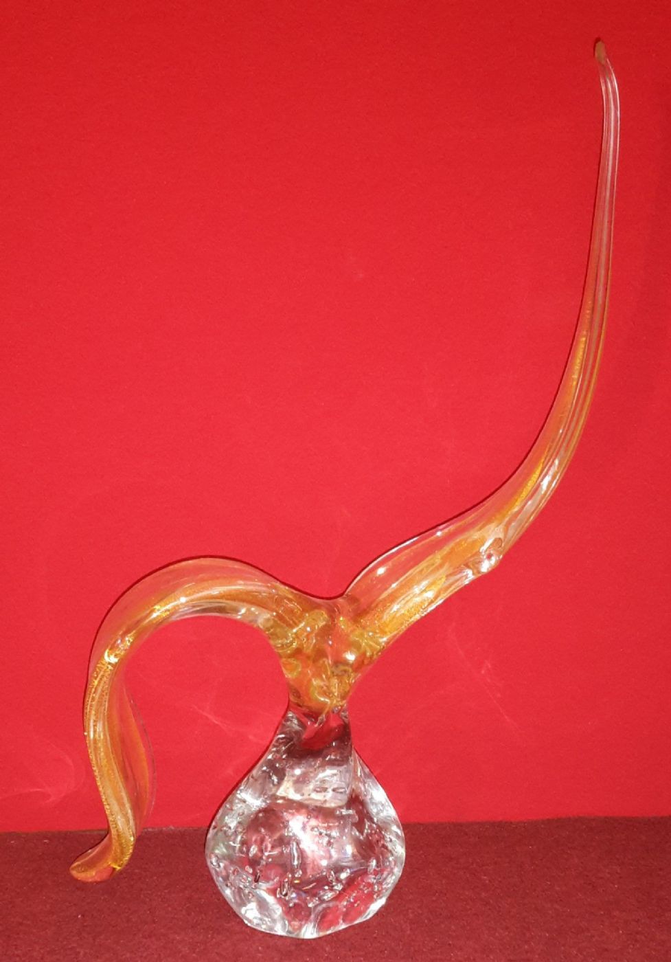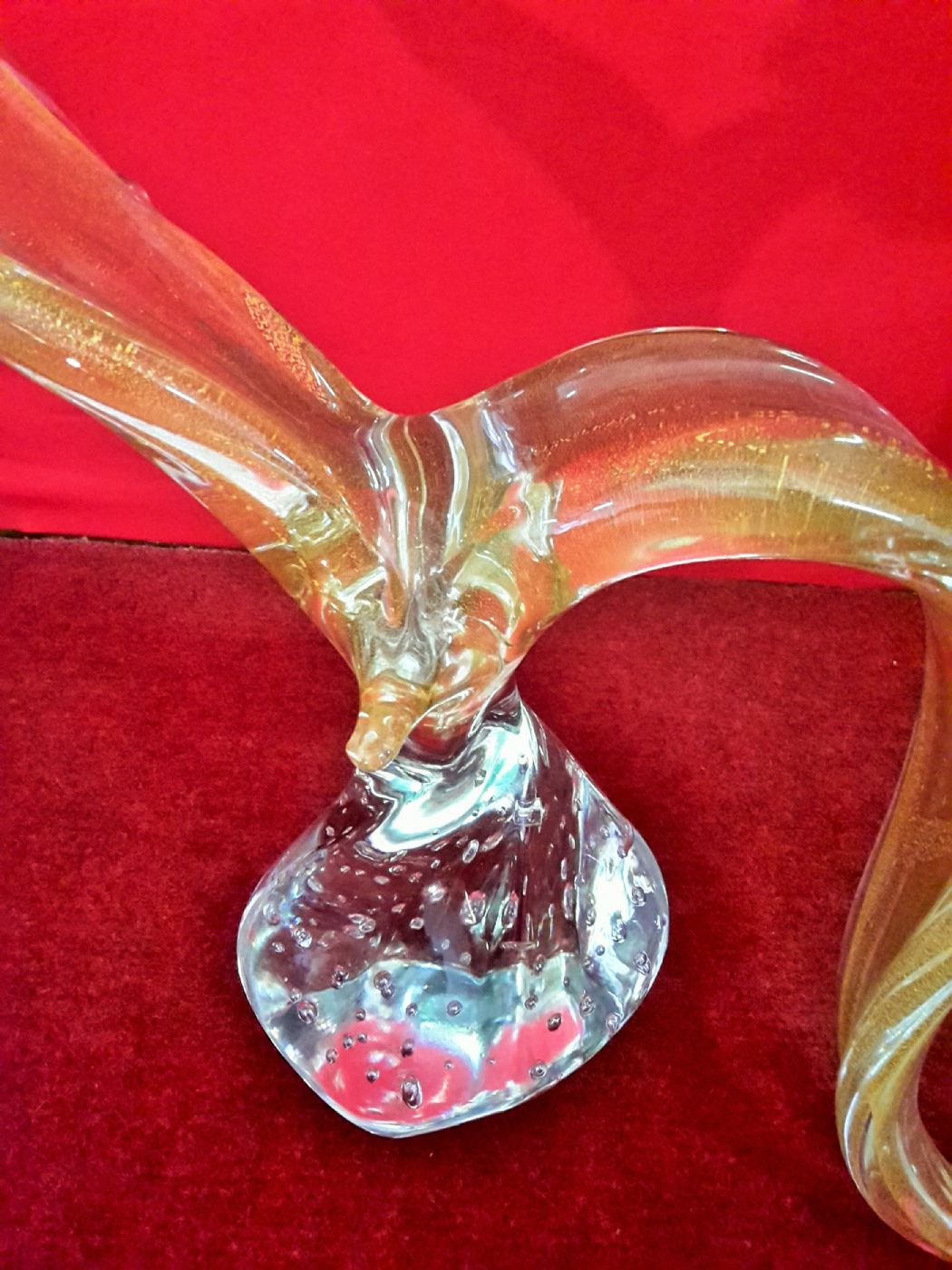 Murano glass sculpture realized and signed by master Sergio Costantini.It represents a flying gull and is made of transparent glass and gold.