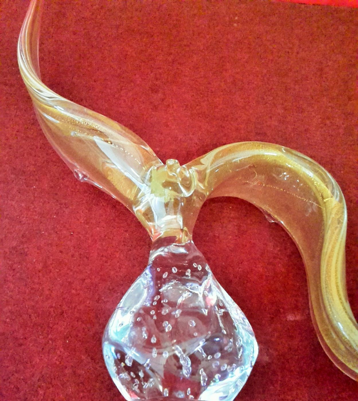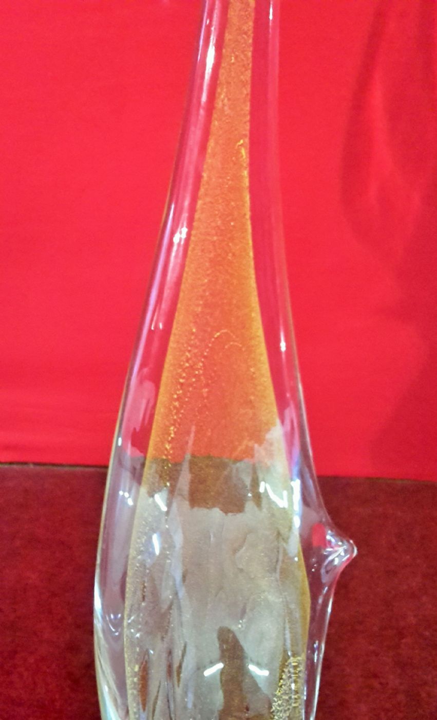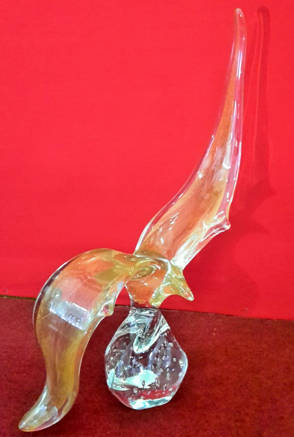 Murano glass sculpture realized and signed by master Sergio Costantini.It represents a flying gull and is made of transparent glass and gold.