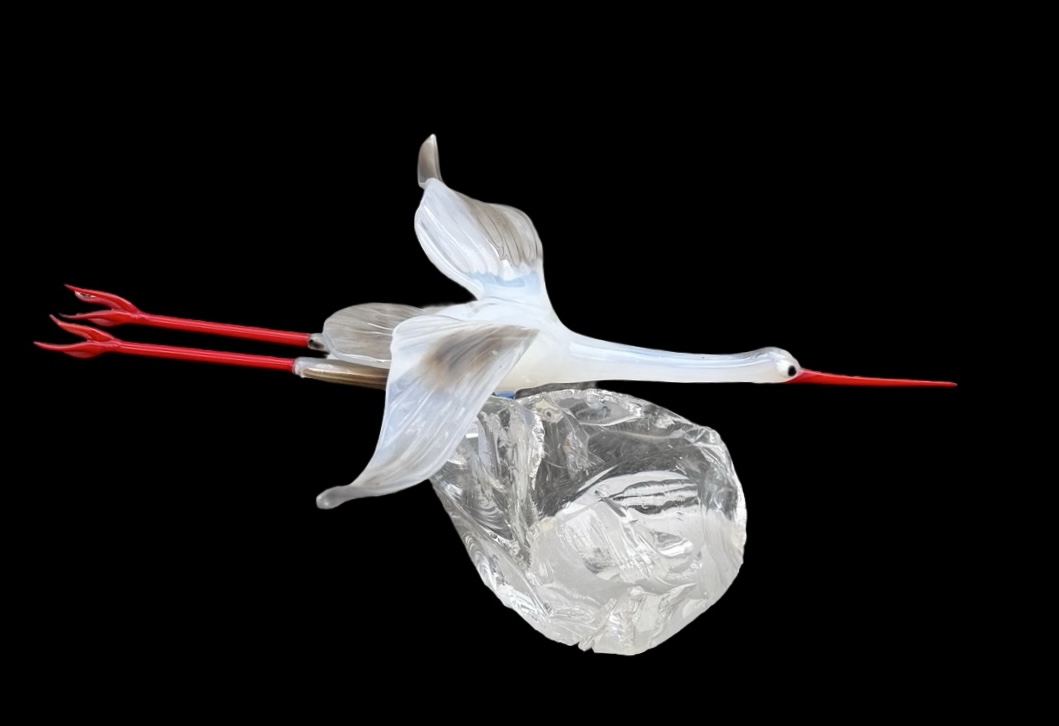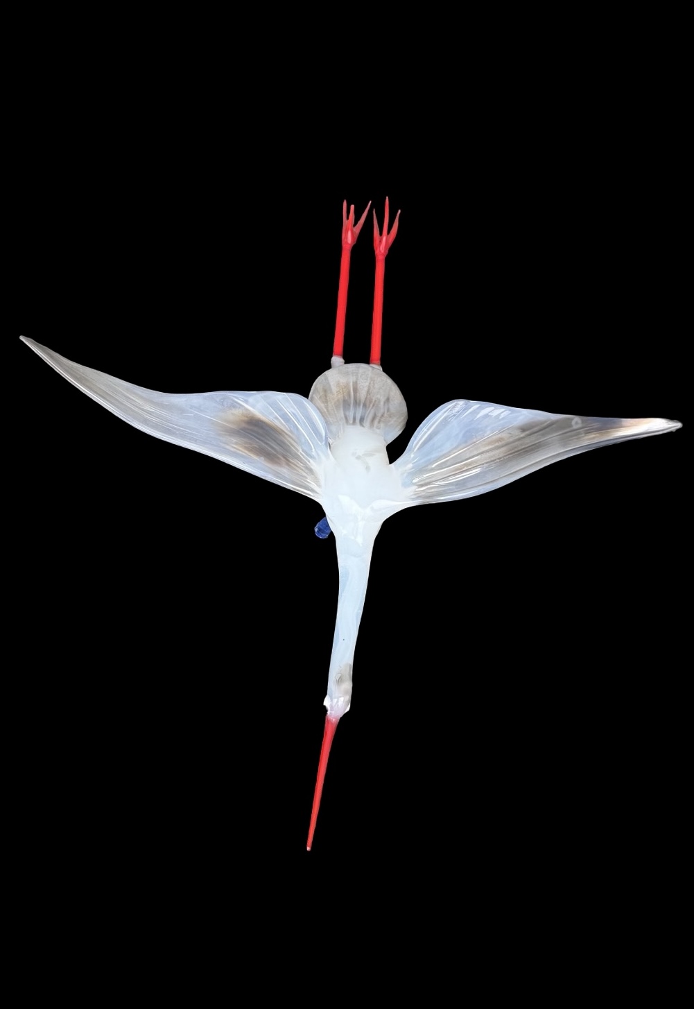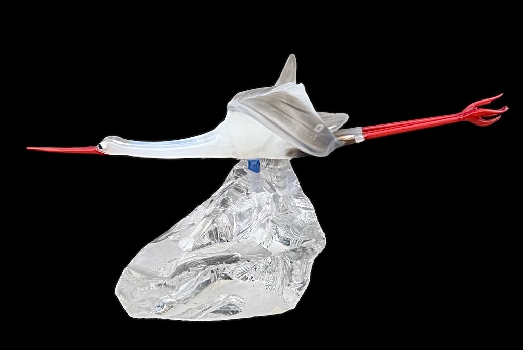 Glass sculpture depicting a stork in flight. Murano.